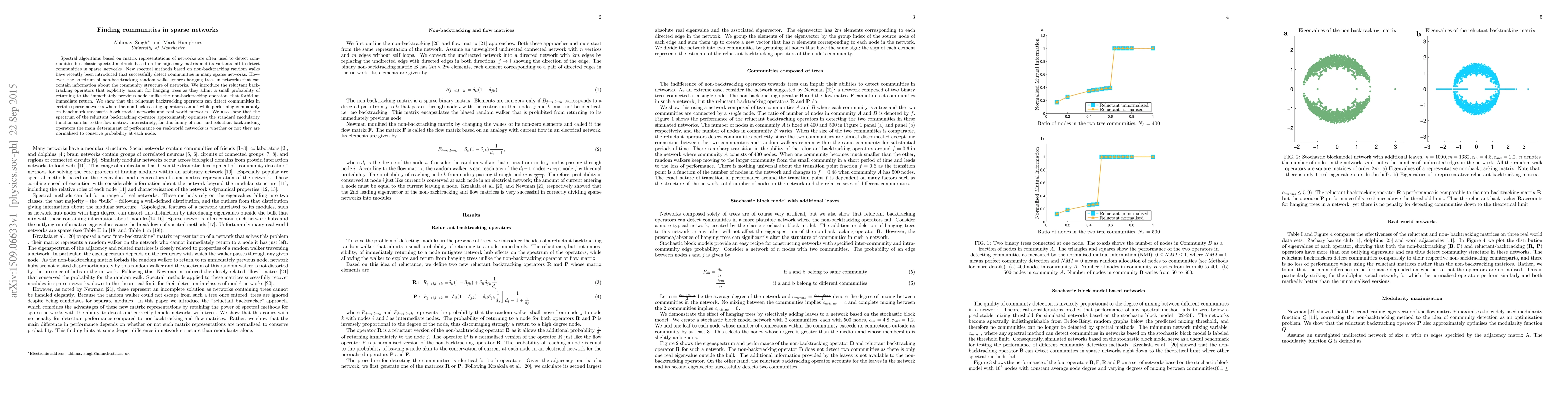 Spectral algorithms based on matrix representations of networks are often used to detect communities but classic spectral methods based on the adjacency matrix and its variants fail to detect communities in sparse networks. New spectral methods based on non-backtracking random walks have recently been introduced that successfully detect communities in many sparse networks. However, the spectrum of non-backtracking random walks ignores hanging trees in networks that can contain information about the community structure of networks. We introduce the reluctant backtracking operators that explicitly account for hanging trees as they admit a small probability of returning to the immediately previous node unlike the non-backtracking operators that forbid an immediate return. We show that the reluctant backtracking operators can detect communities in certain sparse networks where the non-backtracking operators cannot while performing comparably on benchmark stochastic block model networks and real world networks. We also show that the spectrum of the reluctant backtracking operator approximately optimises the standard modularity function similar to the flow matrix. Interestingly, for this family of non- and reluctant-backtracking operators the main determinant of performance on real-world networks is whether or not they are normalised to conserve probability at each node.