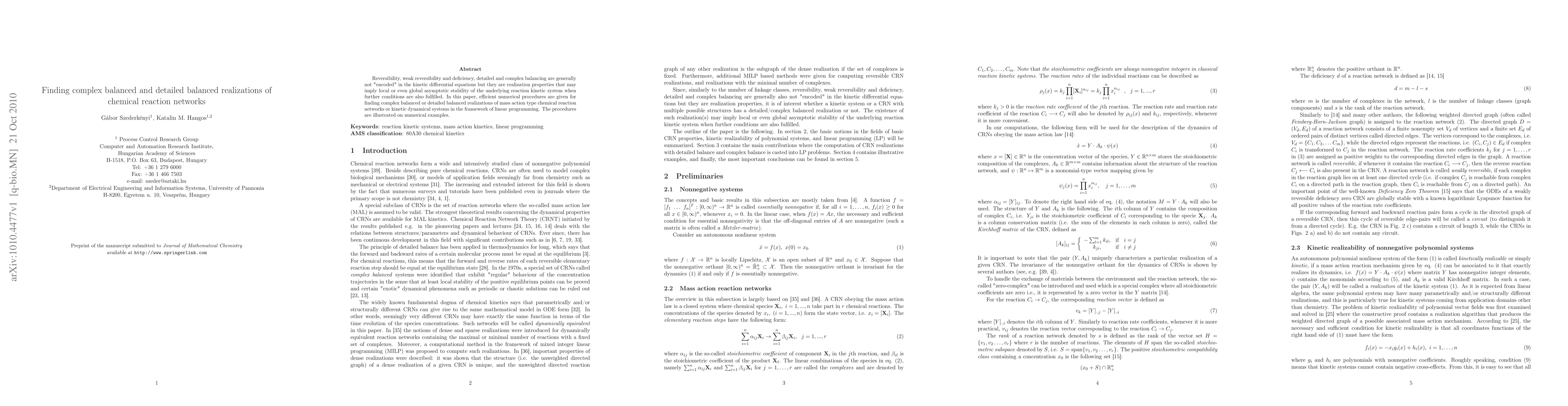 Reversibility, weak reversibility and deficiency, detailed and complex balancing are generally not "encoded" in the kinetic differential equations but they are realization properties that may imply local or even global asymptotic stability of the underlying reaction kinetic system when further conditions are also fulfilled. In this paper, efficient numerical procedures are given for finding complex balanced or detailed balanced realizations of mass action type chemical reaction networks or kinetic dynamical systems in the framework of linear programming. The procedures are illustrated on numerical examples.
