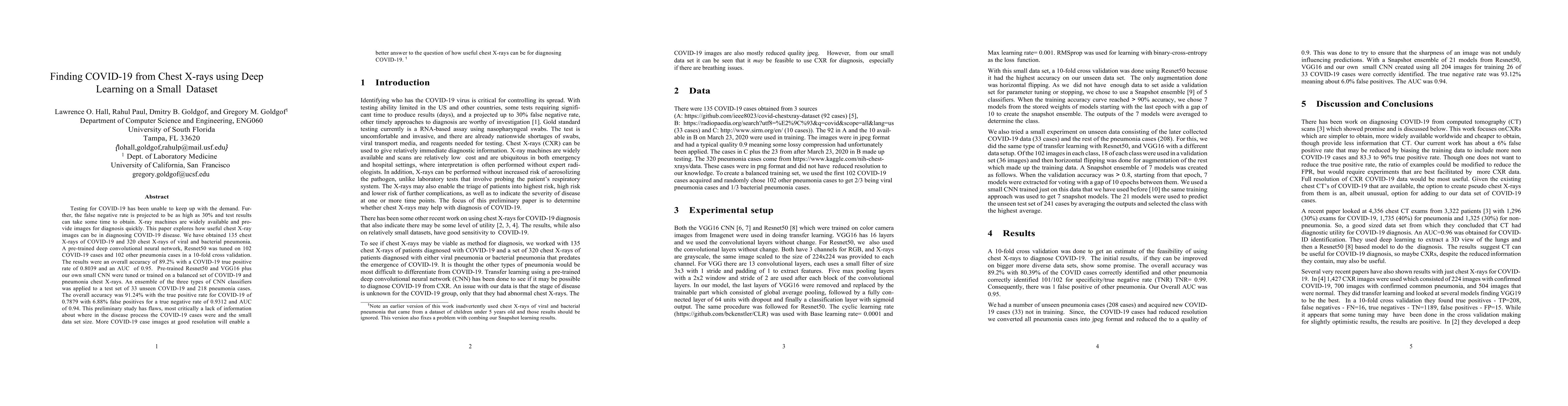 This study uses a deep convolutional neural network to diagnose COVID-19 from chest X-rays, achieving 100% accuracy on a small test set of 102 cases and 95% accuracy on a larger set of 4171 other pneumonia cases. However, the study's limitations include a small dataset size and lack of information on disease progression stages.