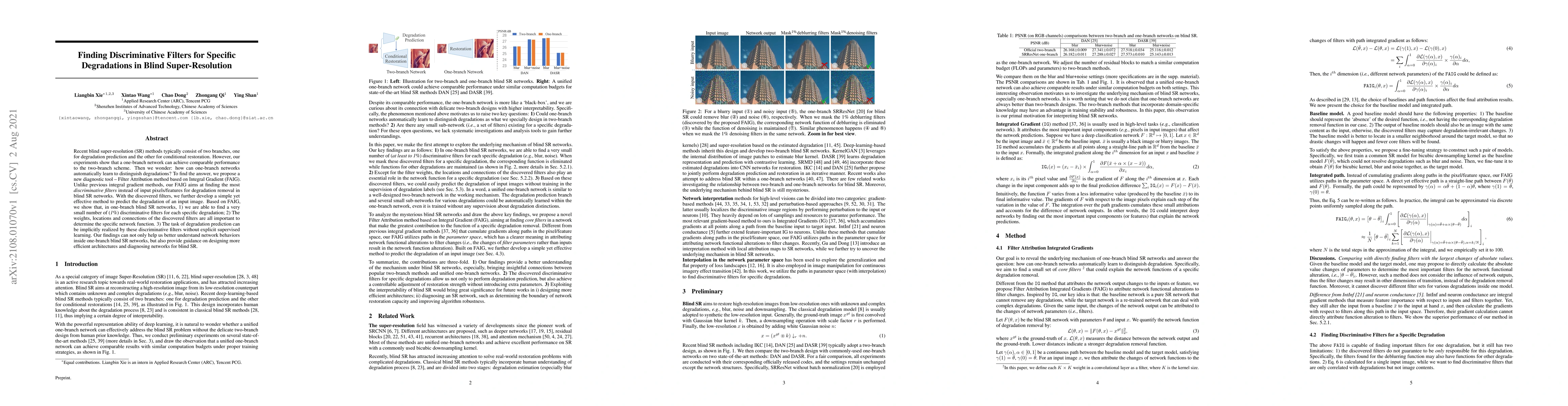 This paper proposes a new diagnostic tool called Filter Attribution method based on Integral Gradient (FAIG) to identify discriminative filters in one-branch blind super-resolution networks. The study finds that these filters can implicitly predict image degradations without explicit supervised learning, offering insights into network behavior and guiding the design of more efficient architectures.