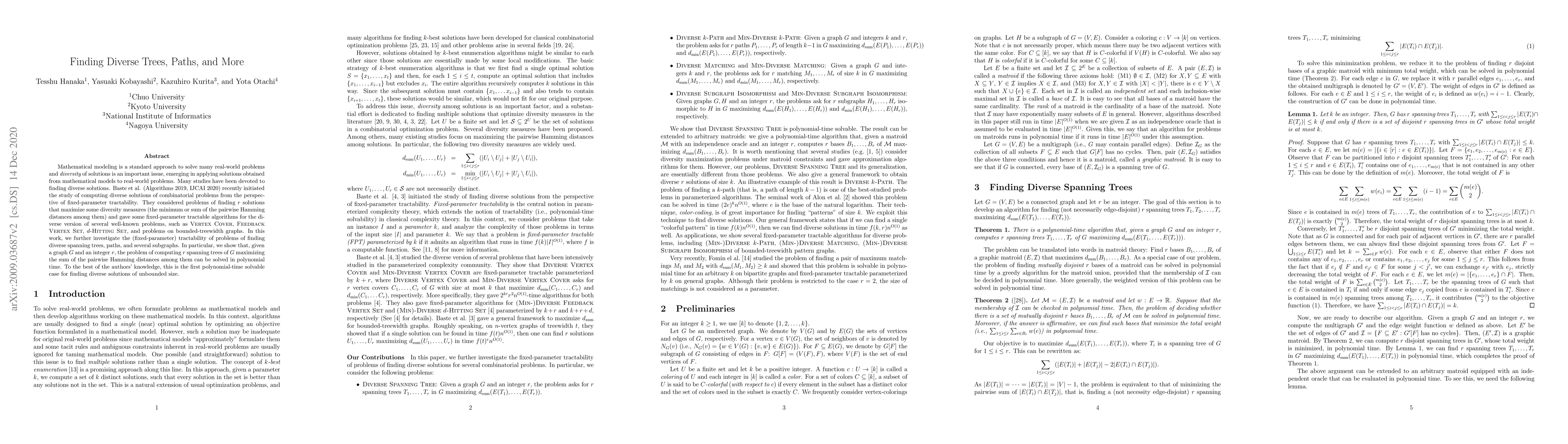 This paper investigates the fixed-parameter tractability of finding diverse spanning trees, paths, and subgraphs in graphs. It demonstrates that computing $r$ spanning trees maximizing the sum of pairwise Hamming distances can be solved in polynomial time, marking the first polynomial-time solution for diverse solutions of unbounded size.