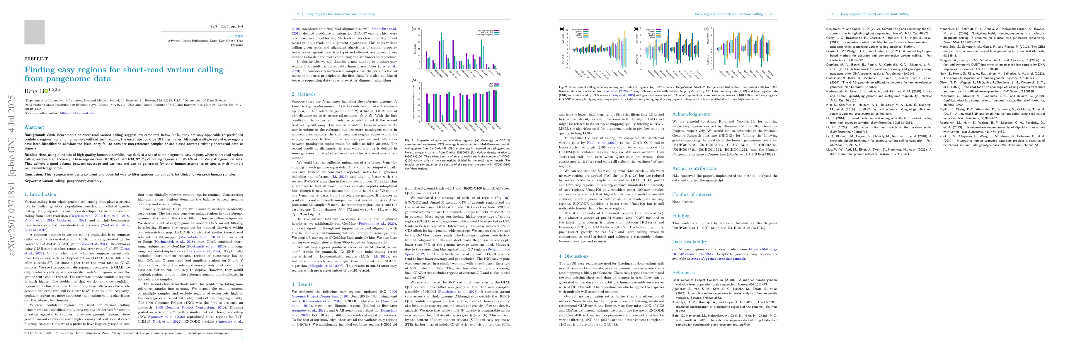 Background: While benchmarks on short-read variant calling suggest low error rate below 0.5%, they are only applicable to predefined confident regions. For a human sample without such regions, the error rate could be 10 times higher. Although multiple sets of easy regions have been identified to alleviate the issue, they fail to consider non-reference samples or are biased towards existing short-read data or aligners. Results: Here, using hundreds of high-quality human assemblies, we derived a set of sample-agnostic easy regions where short-read variant calling reaches high accuracy. These regions cover 87.9% of GRCh38, 92.7% of coding regions and 96.4% of ClinVar pathogenic variants. They achieve a good balance between coverage and easiness and can be generated for other human assemblies or species with multiple well assembled genomes. Conclusion: This resource provides a convient and powerful way to filter spurious variant calls for clinical or research human samples.