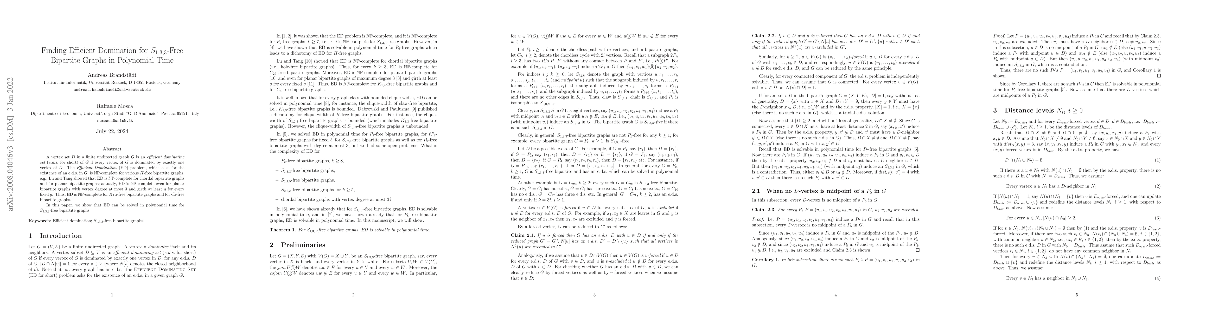 This paper demonstrates that the Efficient Domination (ED) problem, which is \NP-complete for various $H$-free bipartite graphs, can be solved in polynomial time for $S_{1,3,3}$-free bipartite graphs. The authors identify a specific structure where the problem becomes tractable.