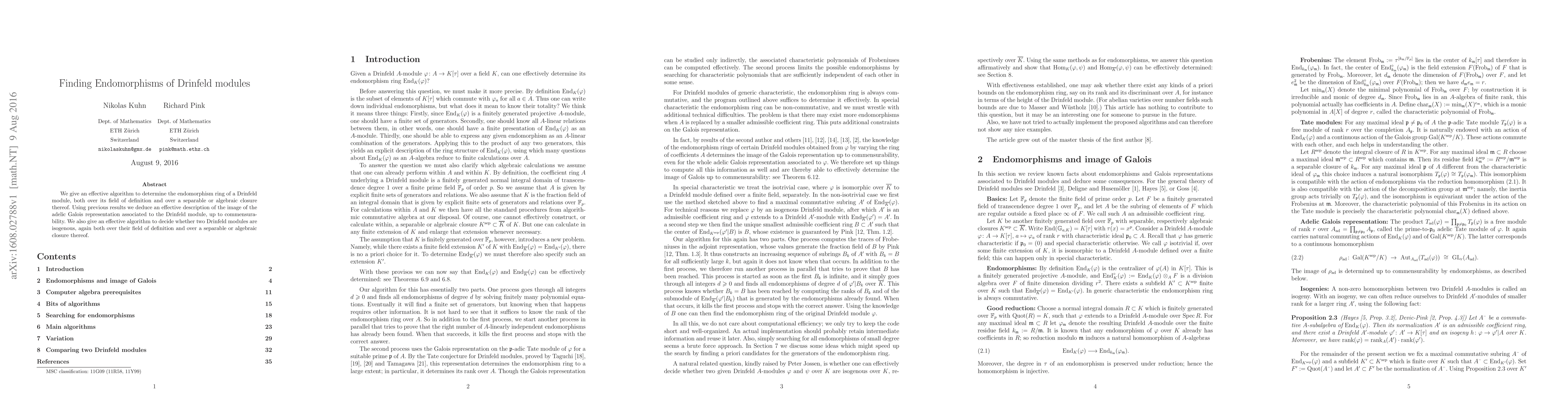 This paper presents an effective algorithm to determine the endomorphism ring of Drinfeld modules and to decide if two Drinfeld modules are isogenous, providing insights both over their defining fields and their separable or algebraic closures. It also deduces an effective description of the adelic Galois representation associated with these modules, up to commensurability.