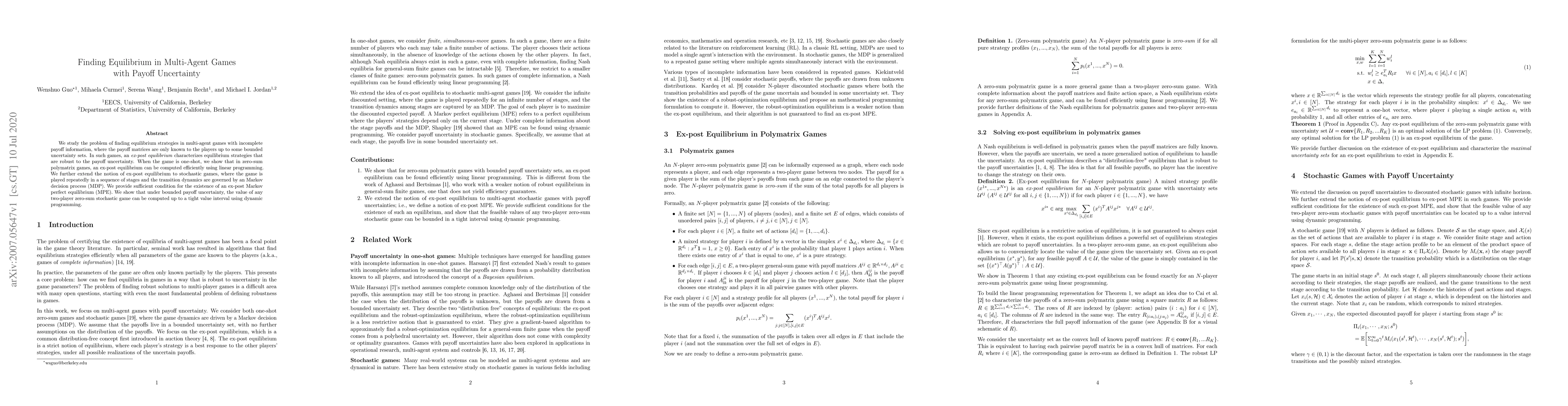 This paper investigates equilibrium strategies in multi-agent games with incomplete payoff information, focusing on ex-post equilibria that are robust to uncertainty. It efficiently computes such equilibria in zero-sum polymatrix games using linear programming and extends the concept to stochastic games, providing conditions for the existence of an ex-post Markov perfect equilibrium.