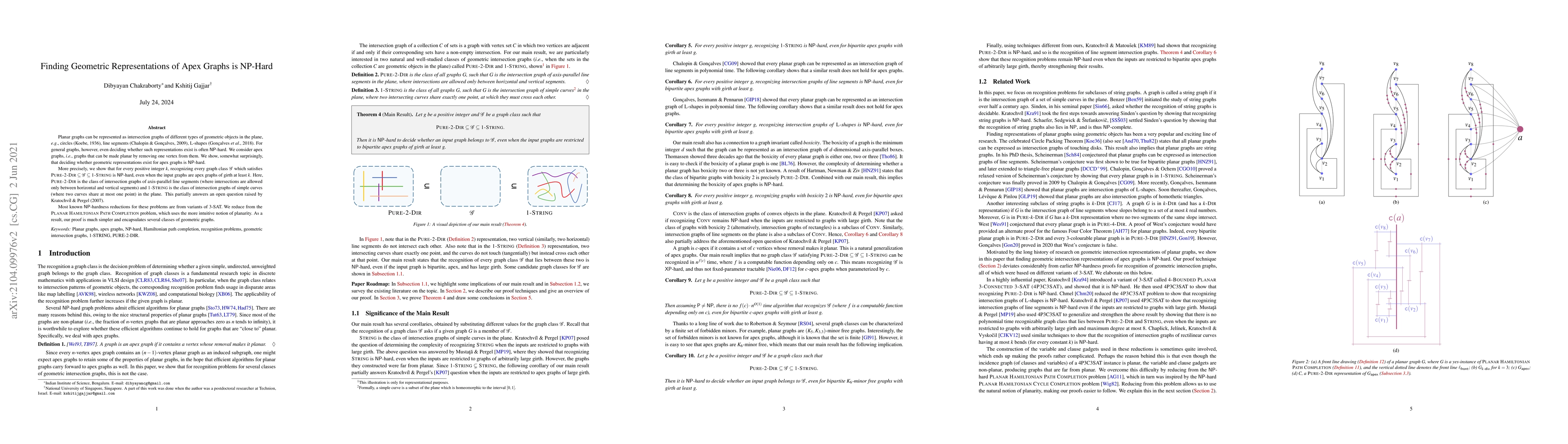 The paper proves that determining geometric representations for apex graphs is NP-hard, addressing an open question. This is shown through reduction from the PLANAR HAMILTONIAN PATH COMPLETION problem, simplifying previous complex 3-SAT-based reductions.