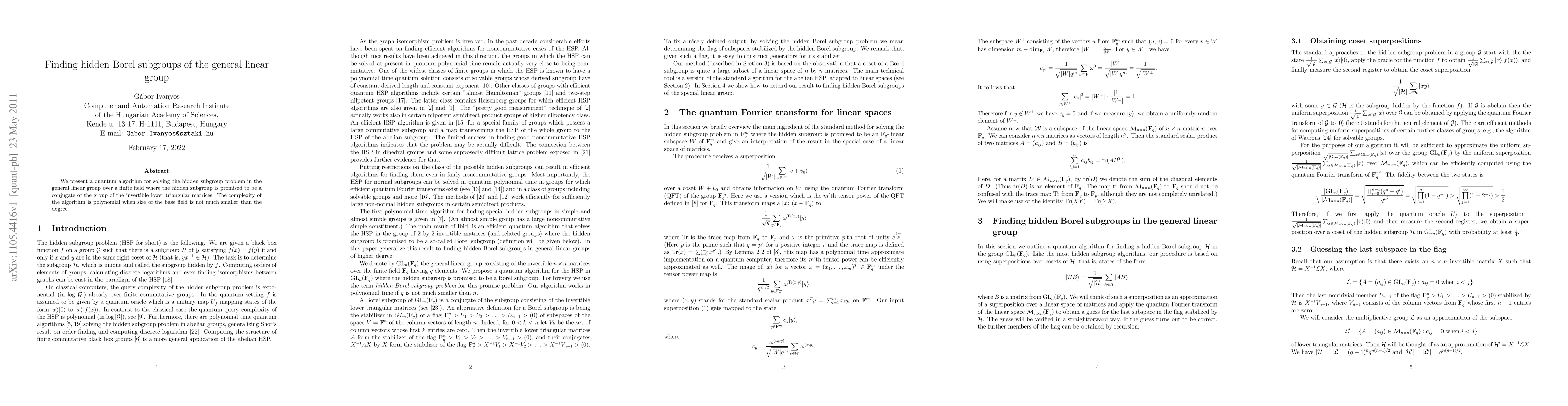 We present a quantum algorithm for solving the hidden subgroup problem in the general linear group over a finite field where the hidden subgroup is promised to be a conjugate of the group of the invertible lower triangular matrices. The complexity of the algorithm is polynomial when size of the base field is not much smaller than the degree.
