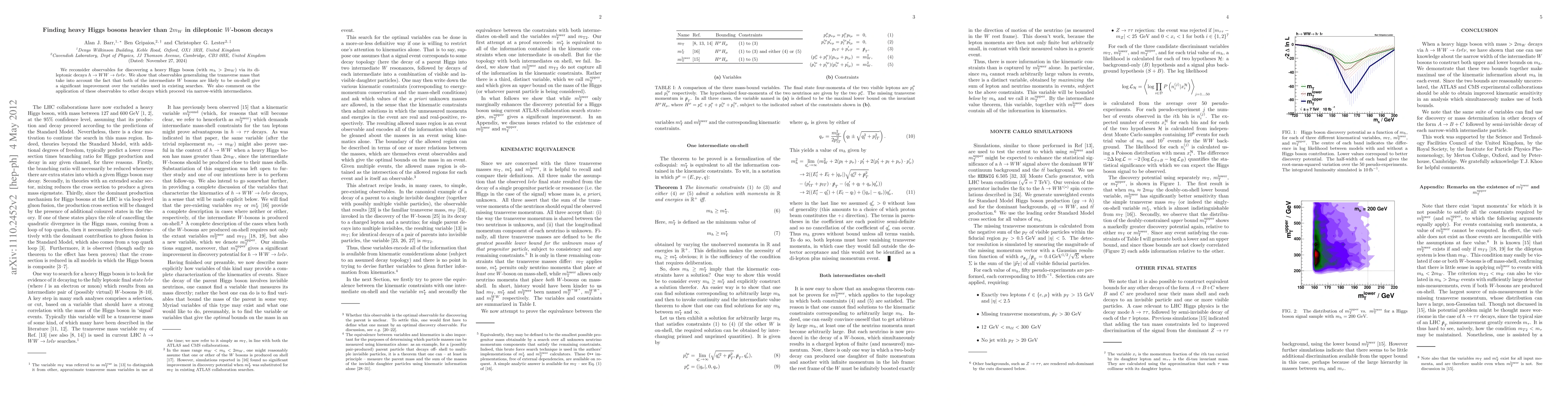 We reconsider observables for discovering a heavy Higgs boson (with m_h > 2m_W) via its di-leptonic decays h -> WW -> l nu l nu. We show that observables generalizing the transverse mass that take into account the fact that both of the intermediate W bosons are likely to be on-shell give a significant improvement over the variables used in existing searches. We also comment on the application of these observables to other decays which proceed via narrow-width intermediates.