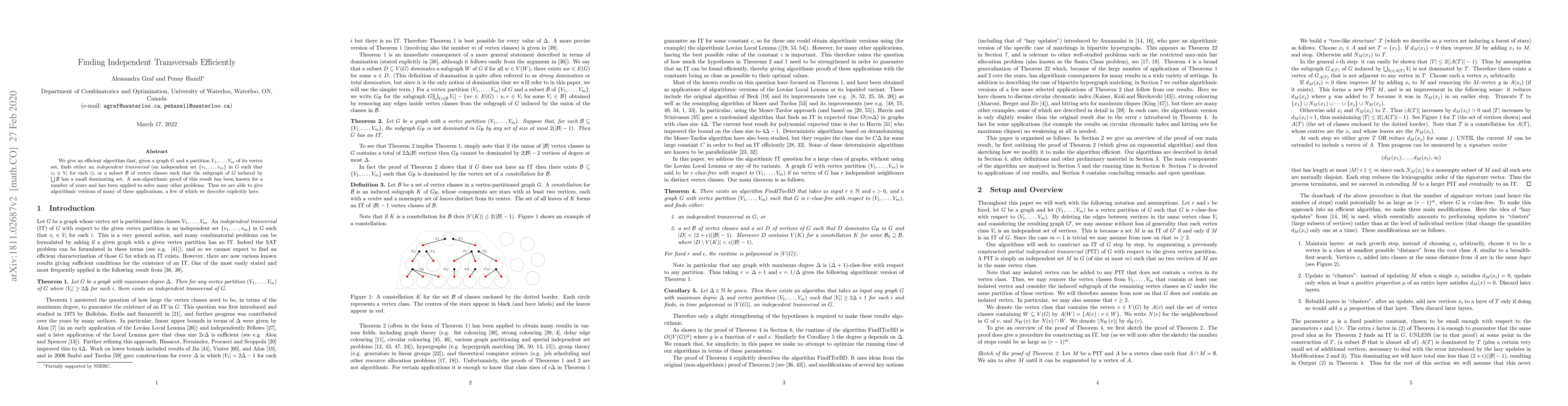 We give an efficient algorithm that, given a graph $G$ and a partition $V_1,\ldots,V_m$ of its vertex set, finds either an independent transversal (an independent set $\{v_1,\ldots,v_m\}$ in $G$ such that $v_i\in V_i$ for each $i$), or a subset $\mathcal B$ of vertex classes such that the subgraph of $G$ induced by $\bigcup\mathcal B$ has a small dominating set. A non-algorithmic proof of this result has been known for a number of years and has been applied to solve many other problems. Thus we are able to give algorithmic versions of many of these applications, a few of which we describe explicitly here.