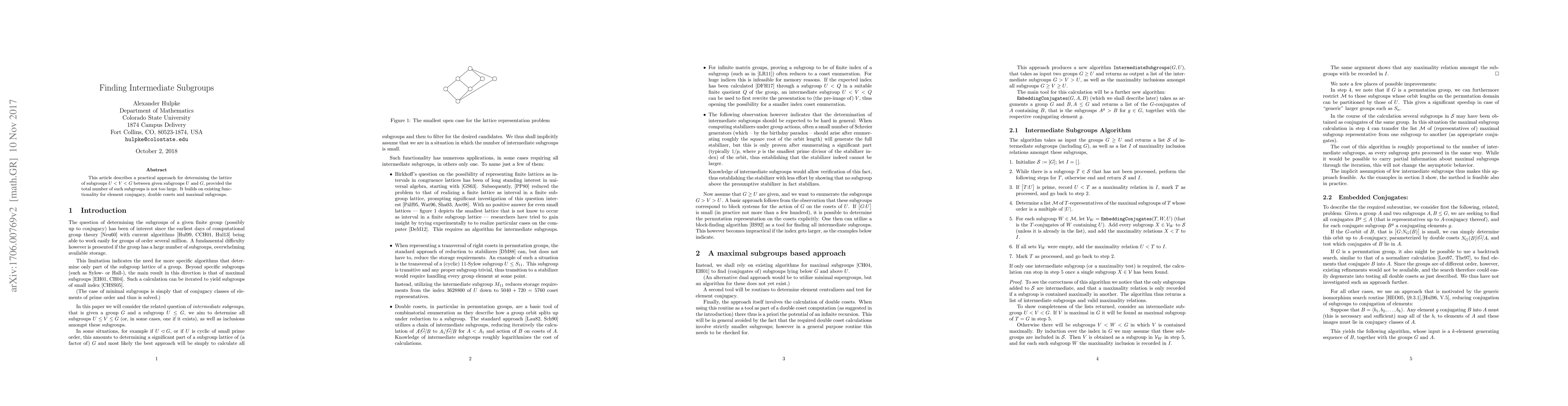 This article describes a practical approach for determining the lattice of subgroups U < V < G between given subgroups U and G, provided the total number of such subgroups is not too large. It builds on existing functionality for element conjugacy, double cosets and maximal subgroups.