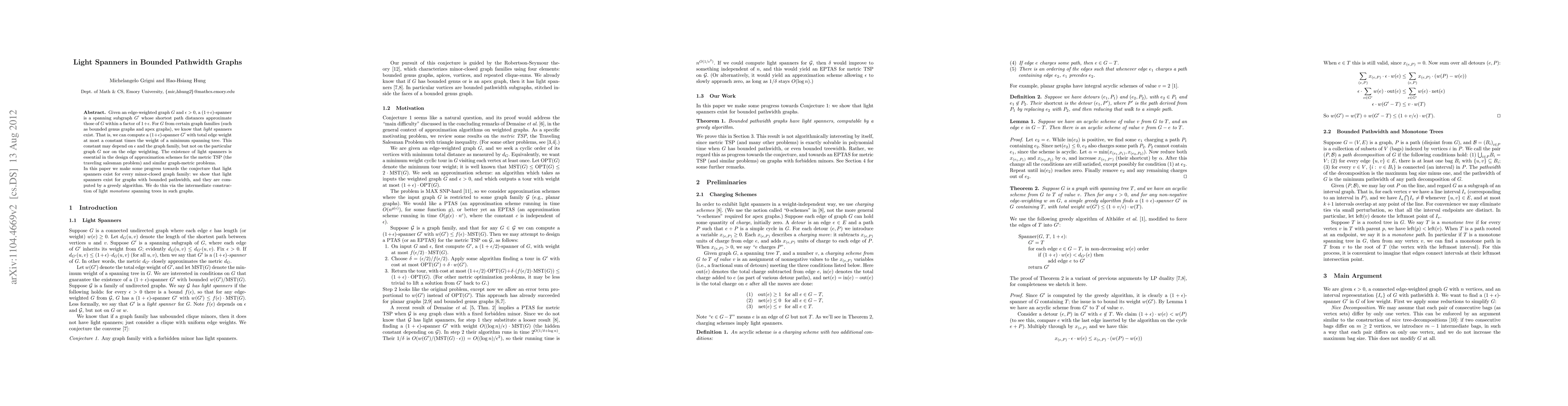 This paper demonstrates the existence of light $(1+\epsilon)$-spanners in graphs with bounded pathwidth, contributing to the conjecture that light spanners exist for all minor-closed graph families. The authors achieve this by constructing sufficiently light monotone spanning trees in these graphs.