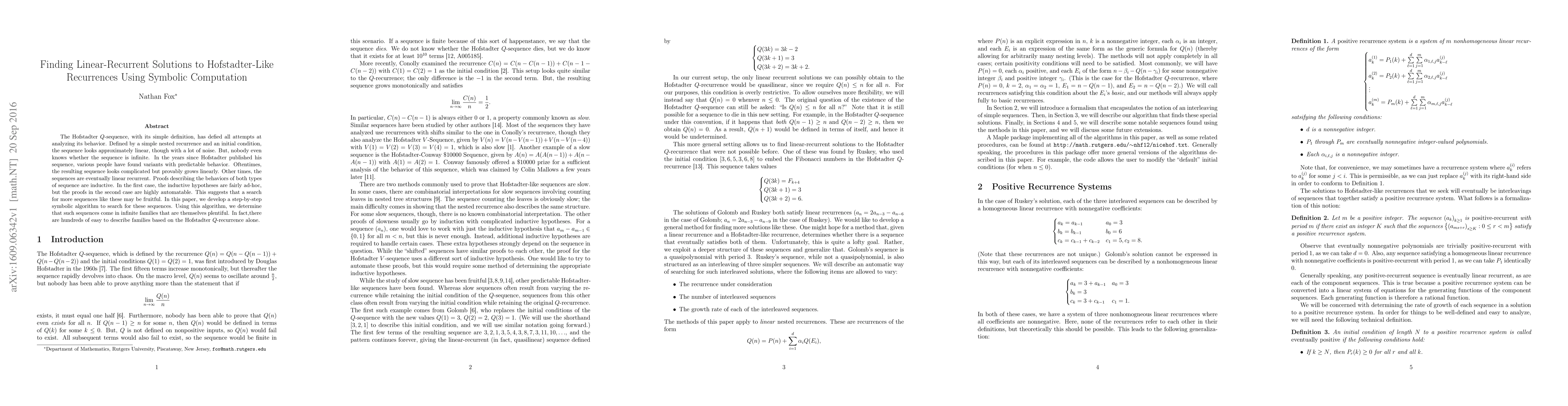 Researchers developed an algorithm to search for linear-recurrent solutions to Hofstadter-like recurrences, discovering hundreds of infinite families with predictable behavior.