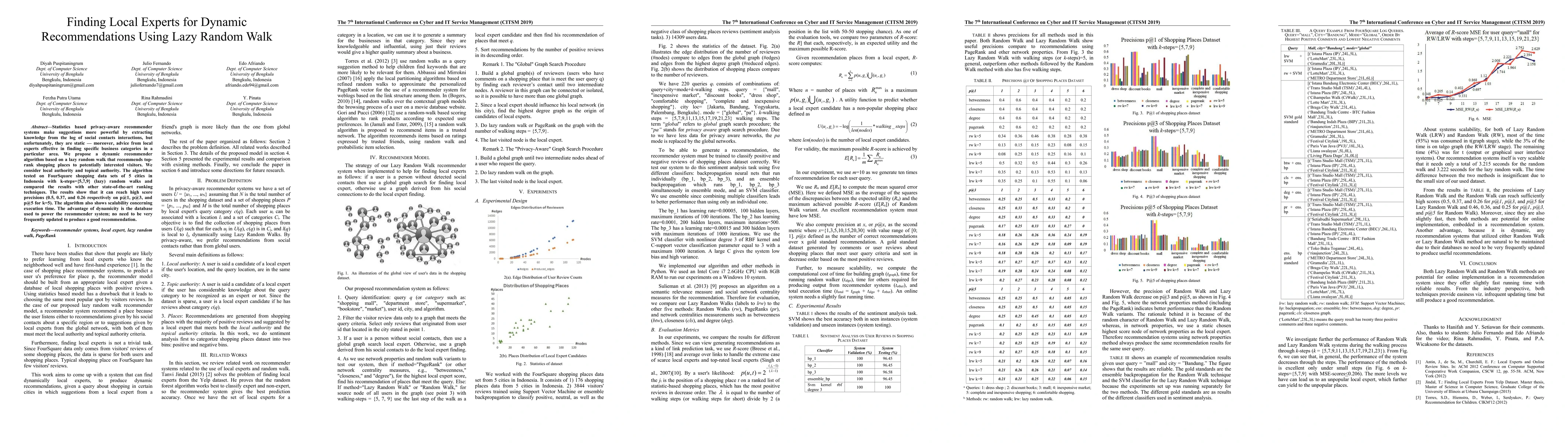 Statistics based privacy-aware recommender systems make suggestions more powerful by extracting knowledge from the log of social contacts interactions, but unfortunately, they are static. Moreover, advice from local experts effective in finding specific business categories in a particular area. We propose a dynamic recommender algorithm based on a lazy random walk that recommends top-rank shopping places to potentially interested visitors. We consider local authority and topical authority. The algorithm tested on FourSquare shopping data sets of 5 cities in Indonesia with k-steps of 5,7,9 of (lazy) random walks and compared the results with other state-of-the-art ranking techniques. The results show that it can reach high score precisions (0.5, 0.37, and 0.26 respectively on precision at 1, precision at 3, and precision at 5 for k=5). The algorithm also shows scalability concerning execution time. The advantage of dynamicity is the database used to power the recommender system; no need to be very frequently updated to produce a good recommendation.