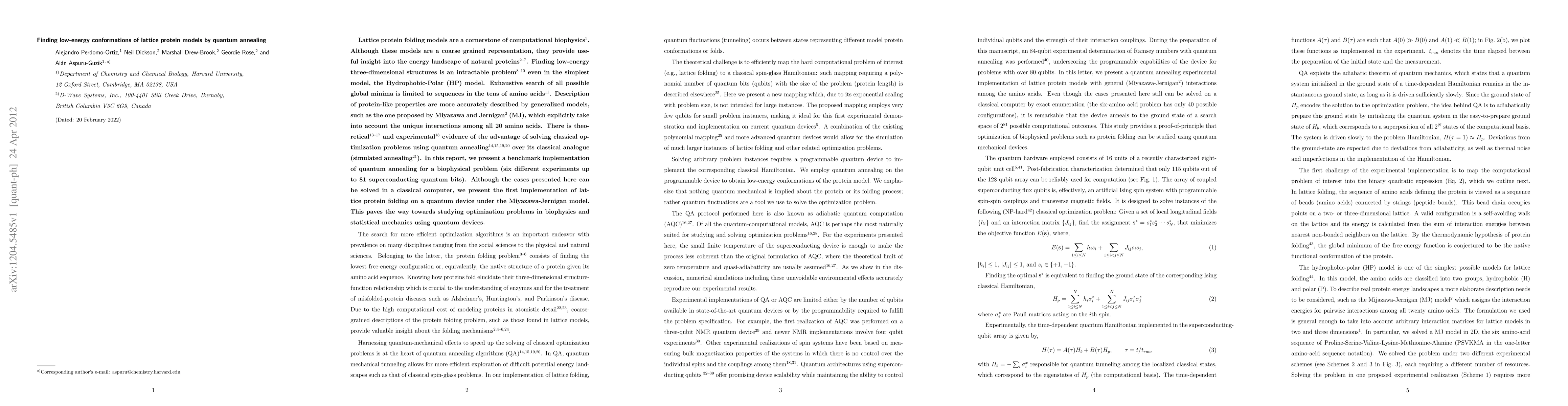 This paper benchmarks quantum annealing for solving lattice protein folding models, specifically the Miyazawa-Jernigan model, demonstrating its potential over classical methods for finding low-energy conformations. The study showcases the first implementation of lattice protein folding on a quantum device, highlighting its potential for future biophysics optimization problems.