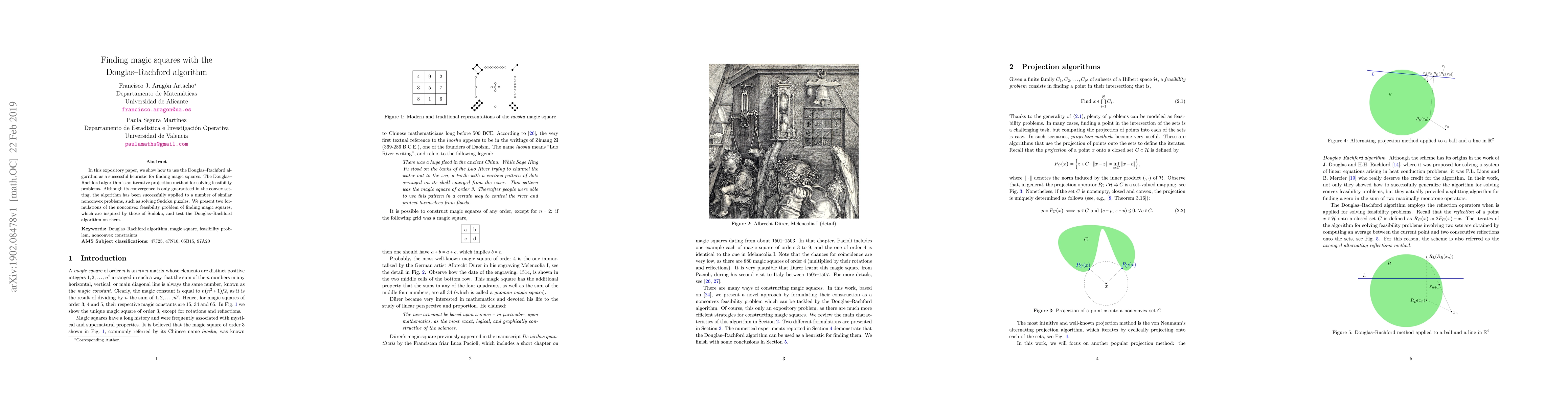 This paper demonstrates the application of the Douglas-Rachford algorithm, a projection method for feasibility problems, as a heuristic for finding magic squares. The algorithm, typically used for convex problems, is tested on two nonconvex formulations inspired by Sudoku, showing its potential effectiveness.