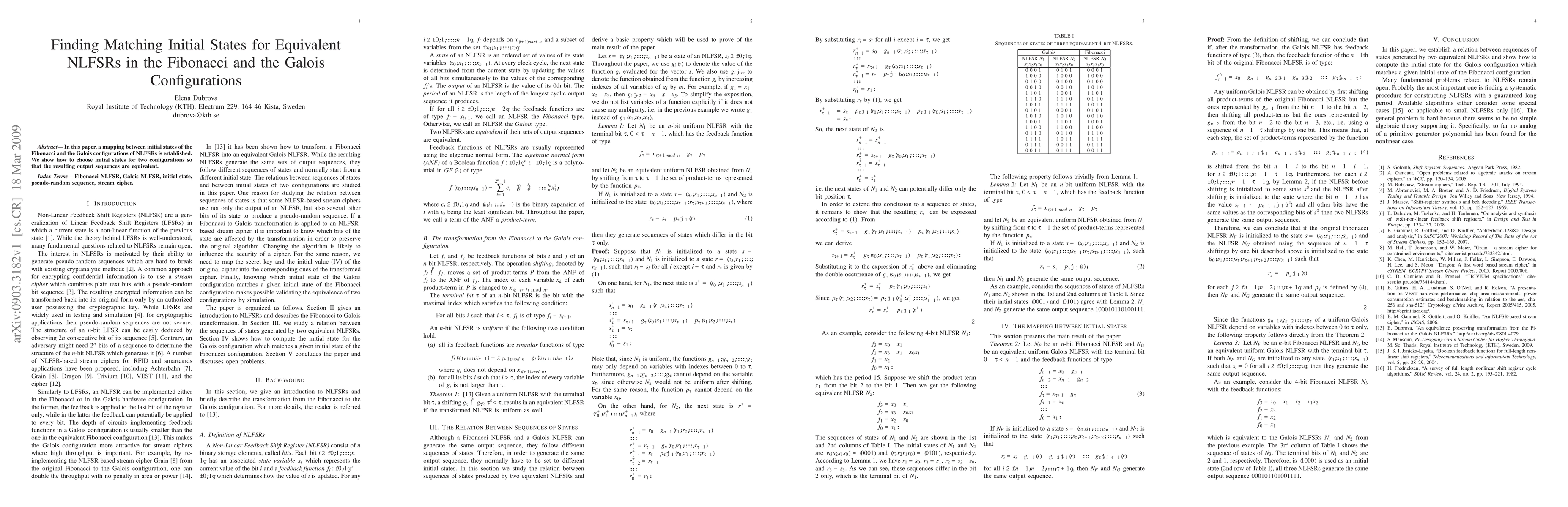 In this paper, a mapping between initial states of the Fibonacci and the Galois configurations of NLFSRs is established. We show how to choose initial states for two configurations so that the resulting output sequences are equivalent.