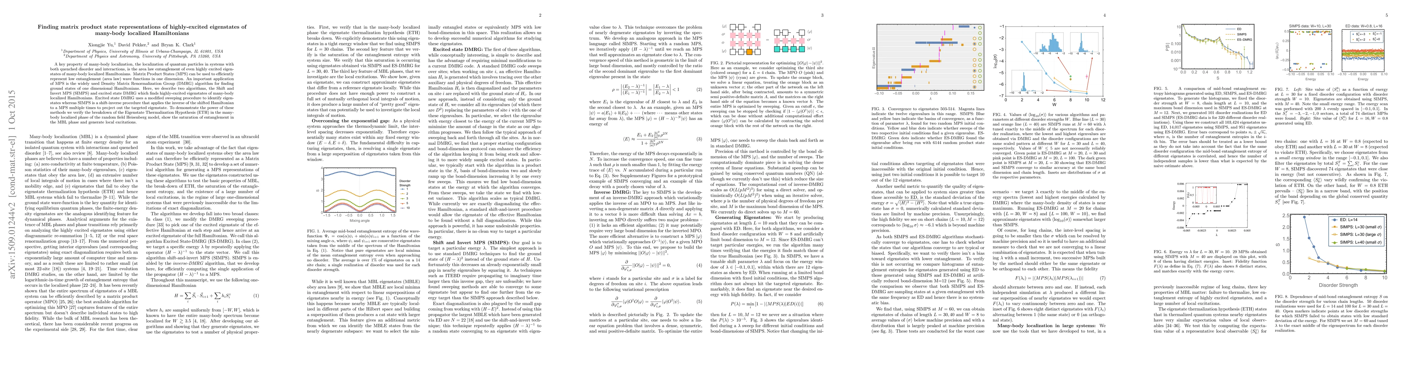 This paper presents two algorithms, Shift and Invert MPS (SIMPS) and excited state DMRG, for efficiently finding matrix product state representations of highly-excited eigenstates in many-body localized Hamiltonians. The study verifies the breakdown of the Eigenstate Thermalization Hypothesis and demonstrates the saturation of entanglement in the localized phase.