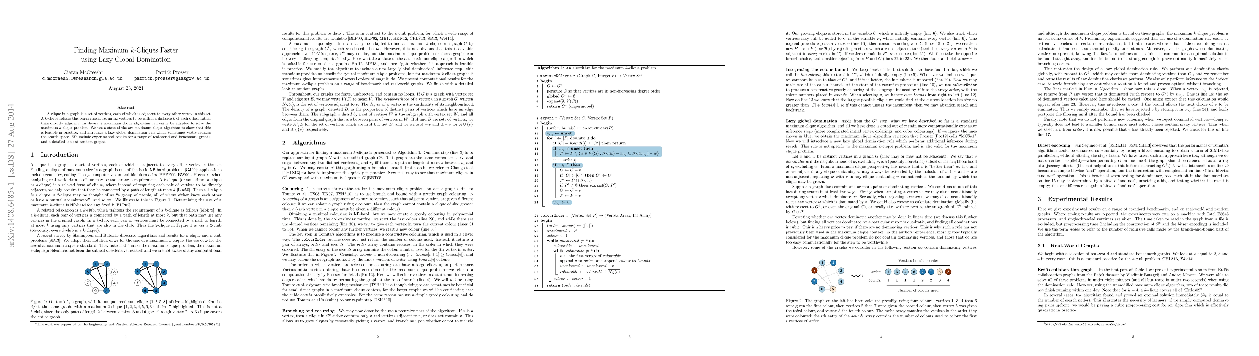 A clique in a graph is a set of vertices, each of which is adjacent to every other vertex in this set. A k-clique relaxes this requirement, requiring vertices to be within a distance k of each other, rather than directly adjacent. In theory, a maximum clique algorithm can easily be adapted to solve the maximum k-clique problem. We use a state of the art maximum clique algorithm to show that this is feasible in practice, and introduce a lazy global domination rule which sometimes vastly reduces the search space. We include experimental results for a range of real-world and benchmark graphs, and a detailed look at random graphs.