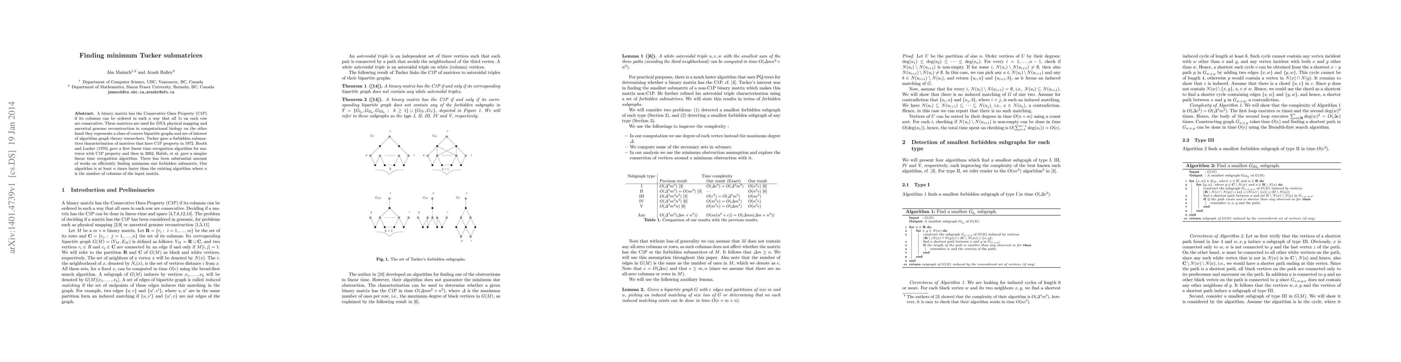 This paper presents an efficient algorithm for finding minimum Tucker submatrices that characterize binary matrices with the Consecutive Ones Property (C1P), which are significant in computational biology for DNA mapping and ancestral genome reconstruction. The proposed algorithm is claimed to be at least $n$ times faster than existing methods, where $n$ is the number of columns.
