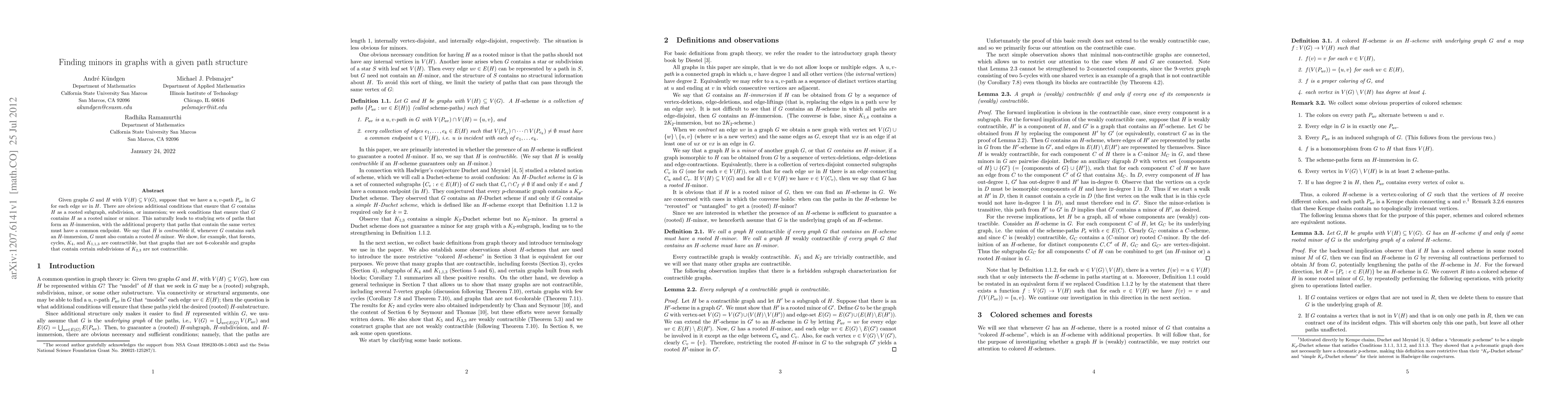 Given graphs G and H with V(G) containing V(H), suppose that we have a u,v-path P_{uv} in G for each edge uv in H. There are obvious additional conditions that ensure that G contains H as a rooted subgraph, subdivision, or immersion; we seek conditions that ensure that G contains H as a rooted minor or minor. This naturally leads to studying sets of paths that form an H-immersion, with the additional property that paths that contain the same vertex must have a common endpoint. We say that $H$ is contractible if, whenever G contains such an H-immersion, G must also contain a rooted H-minor. We show, for example, that forests, cycles, K_4, and K_{1,1,3} are contractible, but that graphs that are not 6-colorable and graphs that contain certain subdivisions of K_{2,3} are not contractible.
