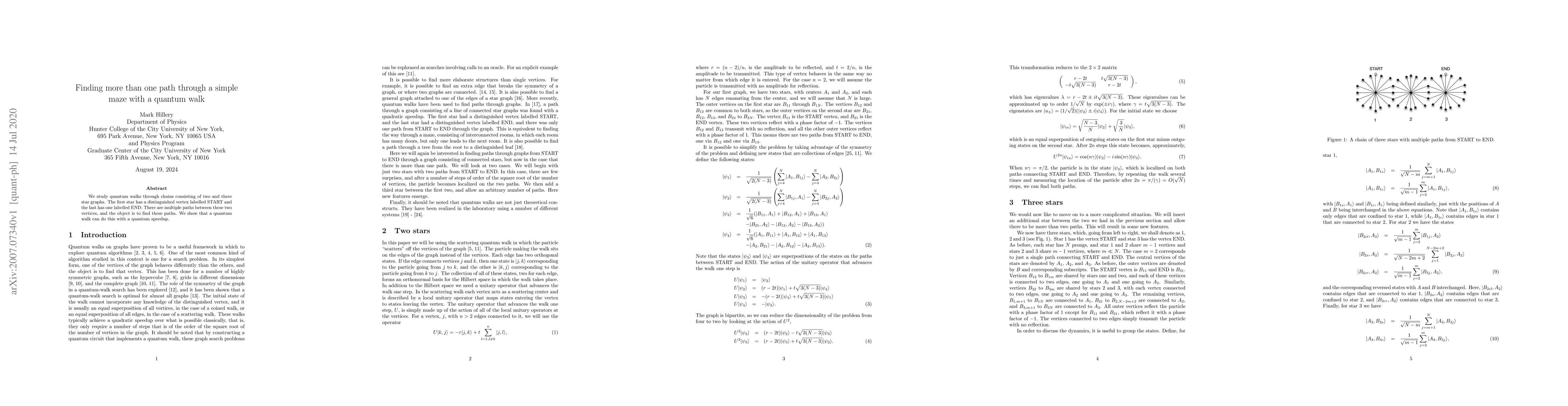 We study quantum walks through chains consisting of two and three star graphs. The first star has a distinguished vertex labelled START and the last has one labelled END. There are multiple paths between these two vertices, and the object is to find these paths. We show that a quantum walk can do this with a quantum speedup.