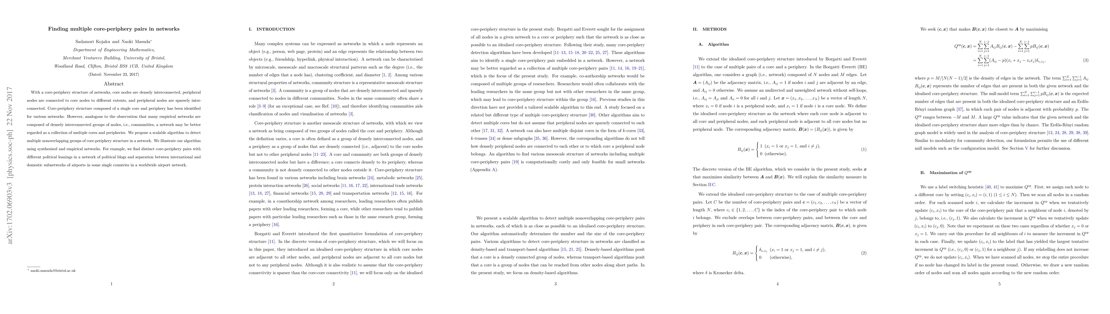 A new algorithm detects multiple non-overlapping core-periphery pairs in networks, revealing distinct groupings in political blogs and airport networks, among others.