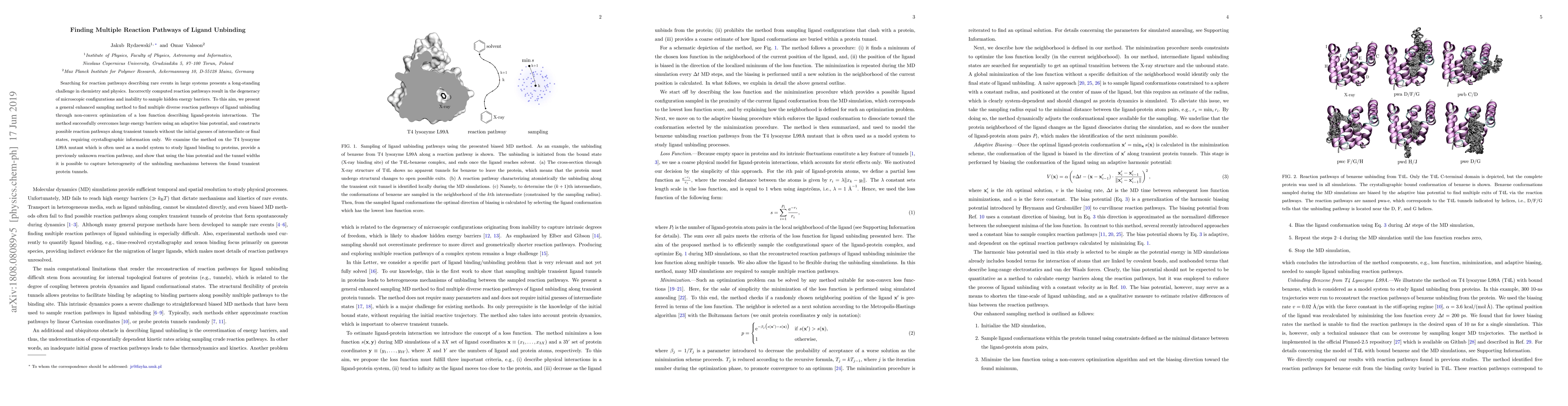 Searching for reaction pathways describing rare events in large systems presents a long-standing challenge in chemistry and physics. Incorrectly computed reaction pathways result in the degeneracy of microscopic configurations and inability to sample hidden energy barriers. To this aim, we present a general enhanced sampling method to find multiple diverse reaction pathways of ligand unbinding through non-convex optimization of a loss function describing ligand-protein interactions. The method successfully overcomes large energy barriers using an adaptive bias potential, and constructs possible reaction pathways along transient tunnels without the initial guesses of intermediate or final states, requiring crystallographic information only. We examine the method on the T4 lysozyme L99A mutant which is often used as a model system to study ligand binding to proteins, provide a previously unknown reaction pathway, and show that using the bias potential and the tunnel widths it is possible to capture heterogeneity of the unbinding mechanisms between the found transient protein tunnels.