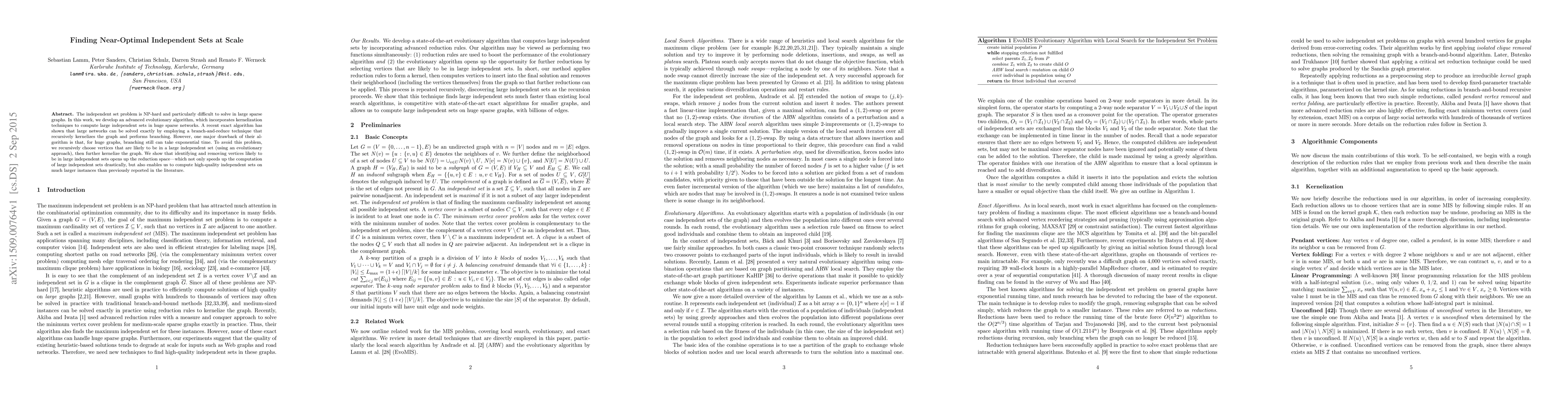 Researchers developed an evolutionary algorithm to find near-optimal independent sets in large sparse graphs, achieving significant speedups over previous exact algorithms. By identifying and removing likely vertices, they enable faster computation of high-quality independent sets on larger instances.