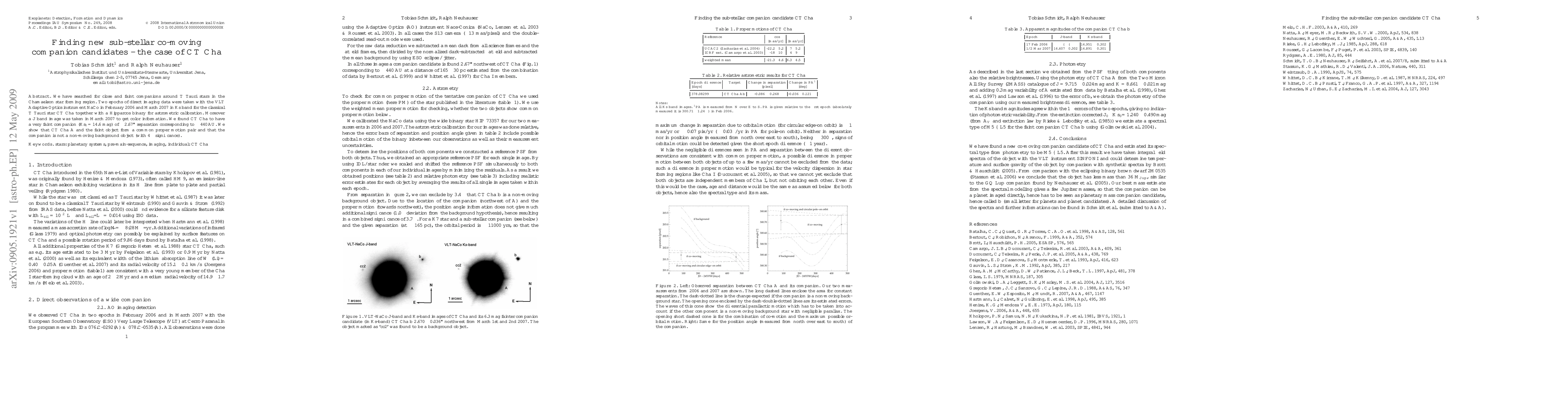 This study identifies a faint companion (~440 AU away) to the T Tauri star CT Cha using VLT Adaptive Optics data. The companion, with Ks magnitude of 14.6, shows common proper motion, confirming it as a true sub-stellar co-moving companion.