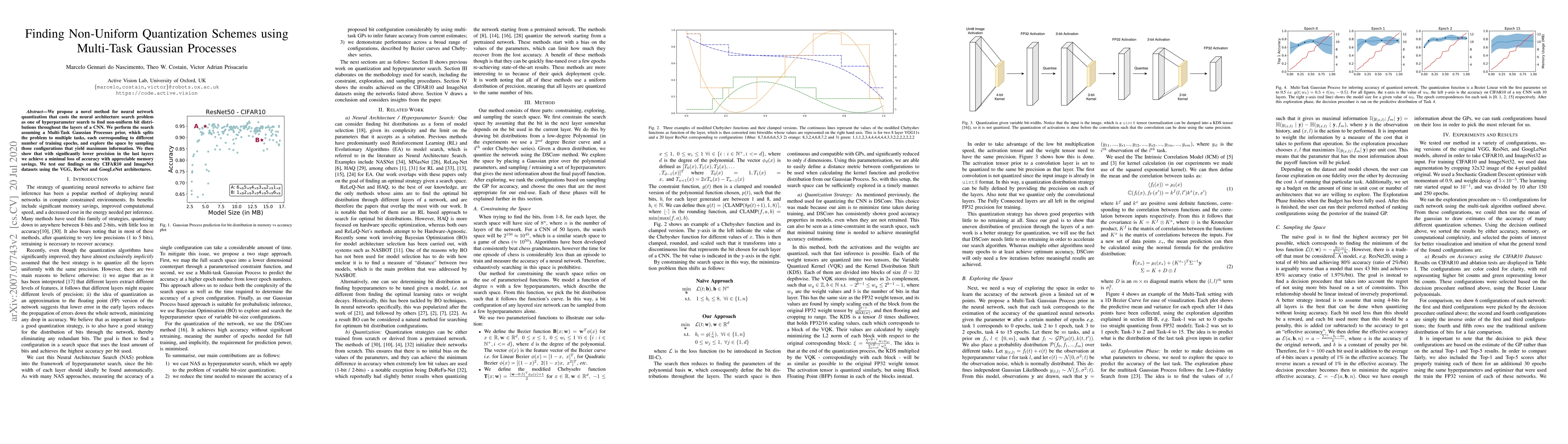 We propose a novel method for neural network quantization that casts the neural architecture search problem as one of hyperparameter search to find non-uniform bit distributions throughout the layers of a CNN. We perform the search assuming a Multi-Task Gaussian Processes prior, which splits the problem to multiple tasks, each corresponding to different number of training epochs, and explore the space by sampling those configurations that yield maximum information. We then show that with significantly lower precision in the last layers we achieve a minimal loss of accuracy with appreciable memory savings. We test our findings on the CIFAR10 and ImageNet datasets using the VGG, ResNet and GoogLeNet architectures.