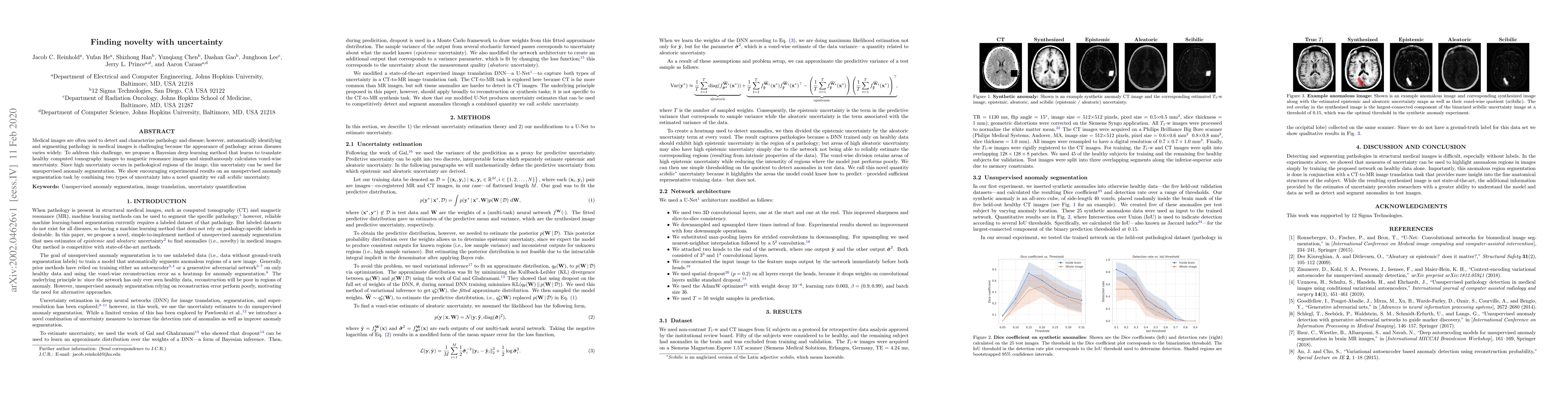 Medical images are often used to detect and characterize pathology and disease; however, automatically identifying and segmenting pathology in medical images is challenging because the appearance of pathology across diseases varies widely. To address this challenge, we propose a Bayesian deep learning method that learns to translate healthy computed tomography images to magnetic resonance images and simultaneously calculates voxel-wise uncertainty. Since high uncertainty occurs in pathological regions of the image, this uncertainty can be used for unsupervised anomaly segmentation. We show encouraging experimental results on an unsupervised anomaly segmentation task by combining two types of uncertainty into a novel quantity we call scibilic uncertainty.