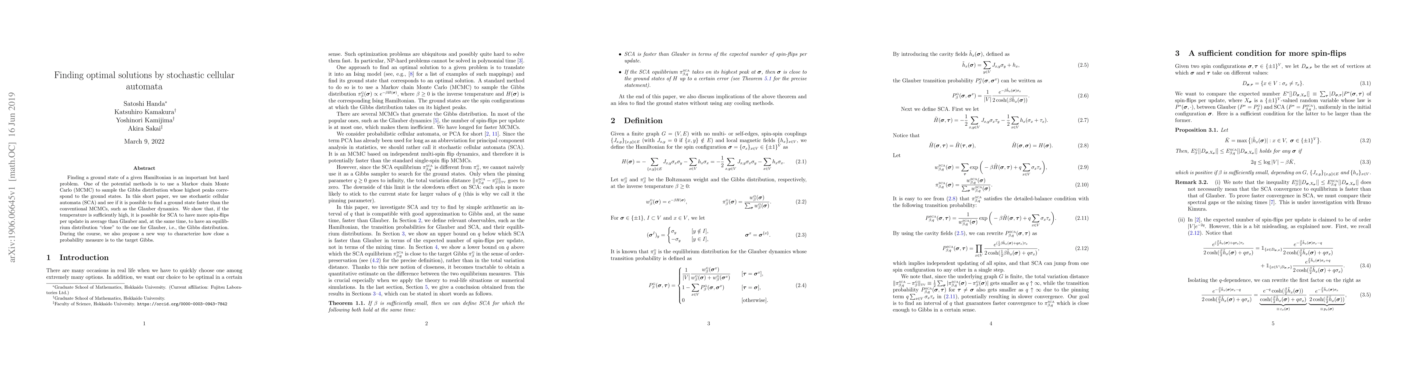 A new method using stochastic cellular automata shows promise for finding ground states faster than traditional methods like Glauber dynamics, with high temperatures allowing for more spin-flips per update while maintaining equilibrium distribution.