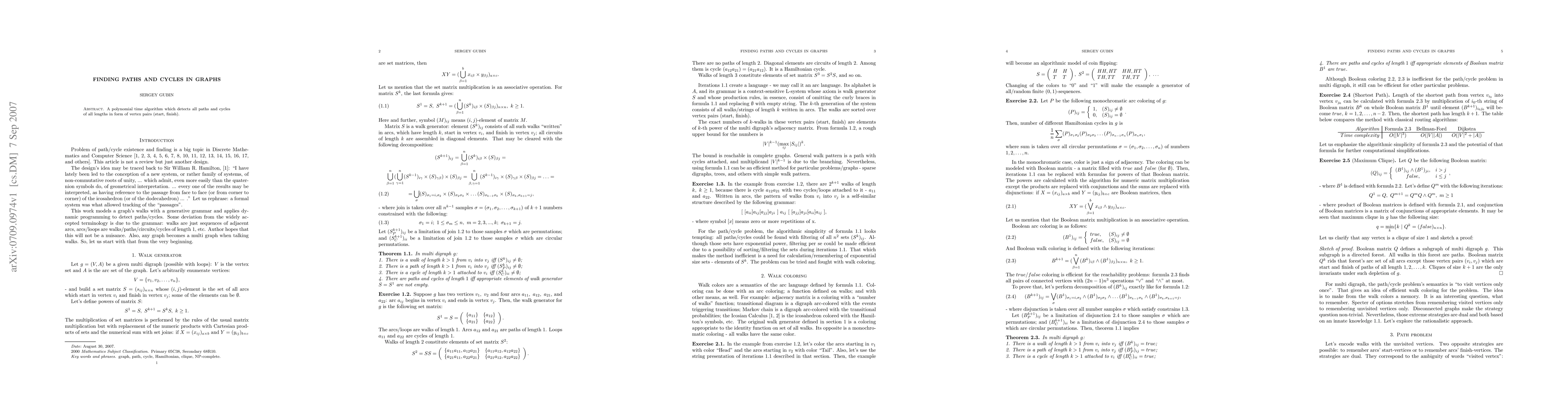 A polynomial time algorithm which detects all paths and cycles of all lengths in form of vertex pairs (start, finish).