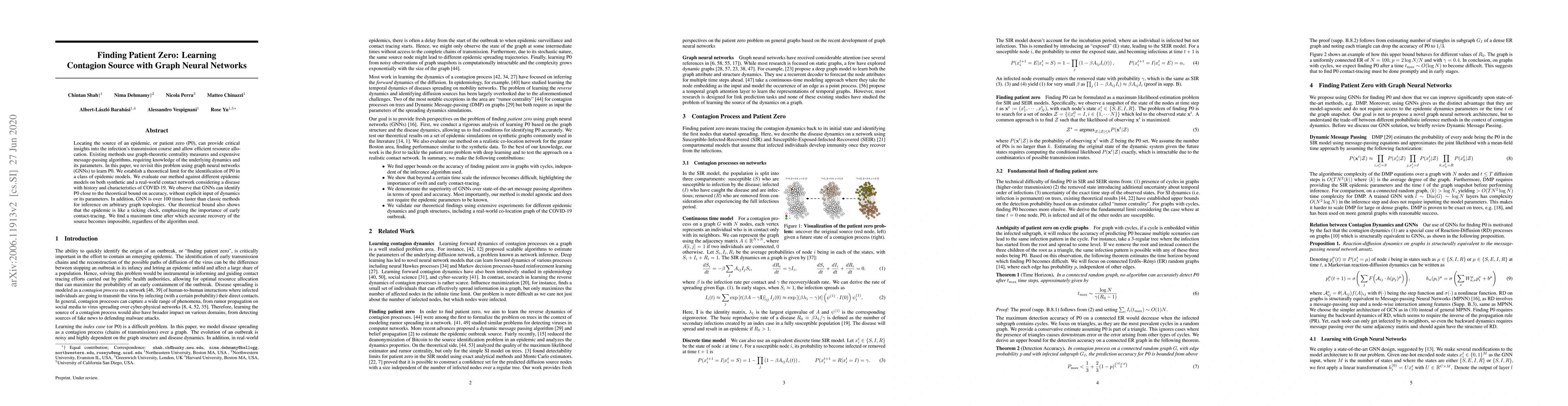 Locating the source of an epidemic, or patient zero (P0), can provide critical insights into the infection's transmission course and allow efficient resource allocation. Existing methods use graph-theoretic centrality measures and expensive message-passing algorithms, requiring knowledge of the underlying dynamics and its parameters. In this paper, we revisit this problem using graph neural networks (GNNs) to learn P0. We establish a theoretical limit for the identification of P0 in a class of epidemic models. We evaluate our method against different epidemic models on both synthetic and a real-world contact network considering a disease with history and characteristics of COVID-19. % We observe that GNNs can identify P0 close to the theoretical bound on accuracy, without explicit input of dynamics or its parameters. In addition, GNN is over 100 times faster than classic methods for inference on arbitrary graph topologies. Our theoretical bound also shows that the epidemic is like a ticking clock, emphasizing the importance of early contact-tracing. We find a maximum time after which accurate recovery of the source becomes impossible, regardless of the algorithm used.