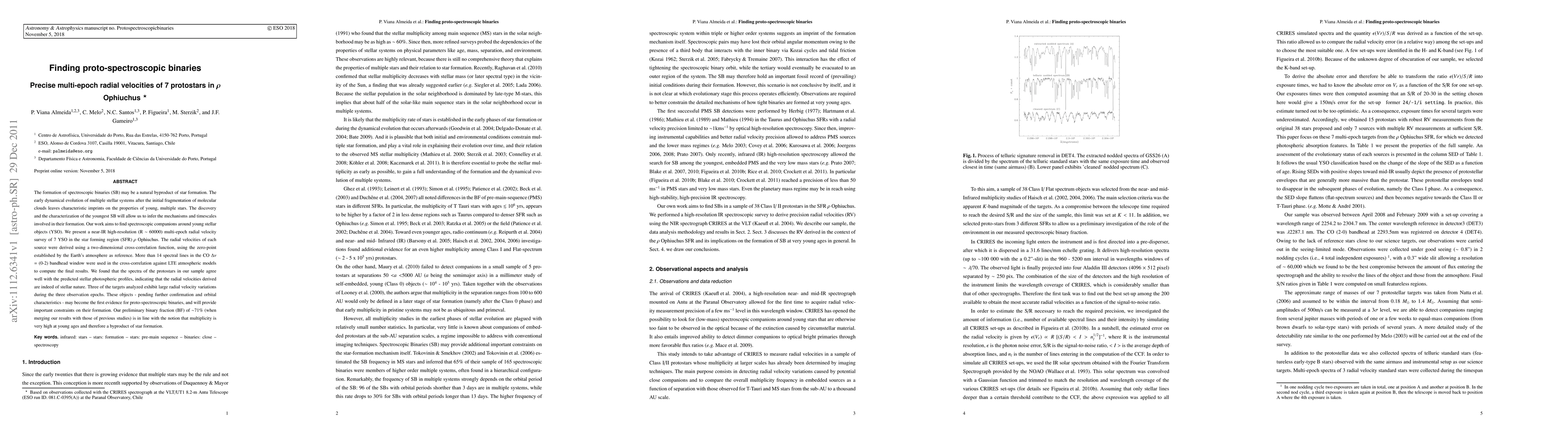 The formation of spectroscopic binaries (SB) may be a natural byproduct of star formation. The early dynamical evolution of multiple stellar systems after the initial fragmentation of molecular clouds leaves characteristic imprints on the properties of young, multiple stars. The discovery and the characterization of the youngest SB will allow us to infer the mechanisms and timescales involved in their formation. Our work aims to find spectroscopic companions around young stellar objects (YSO). We present a near-IR high-resolution (R ~ 60000) multi-epoch radial velocity survey of 7 YSO in the star forming region (SFR) rho-Ophiuchus. The radial velocities of each source were derived using a two-dimensional cross-correlation function, using the zero-point established by the Earth's atmosphere as reference. More than 14 spectral lines in the CO (0-2) bandhead window were used in the cross-correlation against LTE atmospheric models to compute the final results. We found that the spectra of the protostars in our sample agree well with the predicted stellar photospheric profiles, indicating that the radial velocities derived are indeed of stellar nature. Three of the targets analyzed exhibit large radial velocity variations during the three observation epochs. These objects - pending further confirmation and orbital characteristics - may become the first evidence for proto-spectroscopic binaries, and will provide important constraints on their formation. Our preliminary binary fraction (BF) of ~71% (when merging our results with those of previous studies) is in line with the notion that multiplicity is very high at young ages and therefore a byproduct of star formation