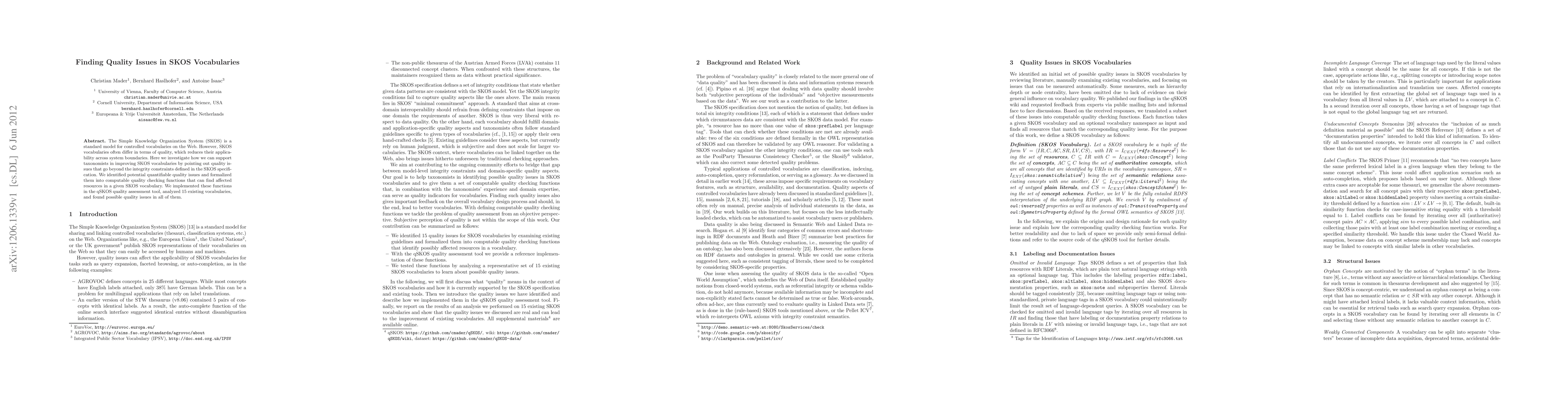 The Simple Knowledge Organization System (SKOS) is a standard model for controlled vocabularies on the Web. However, SKOS vocabularies often differ in terms of quality, which reduces their applicability across system boundaries. Here we investigate how we can support taxonomists in improving SKOS vocabularies by pointing out quality issues that go beyond the integrity constraints defined in the SKOS specification. We identified potential quantifiable quality issues and formalized them into computable quality checking functions that can find affected resources in a given SKOS vocabulary. We implemented these functions in the qSKOS quality assessment tool, analyzed 15 existing vocabularies, and found possible quality issues in all of them.