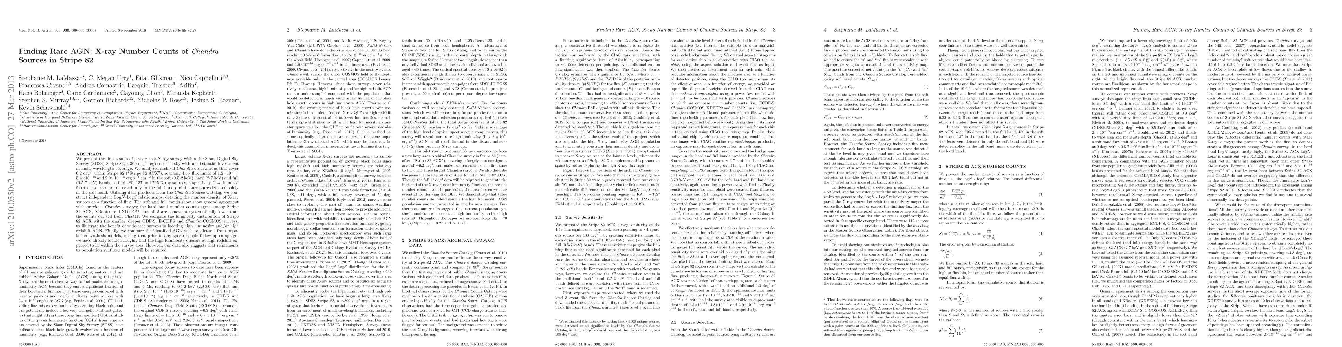 This paper reports on a wide-area X-ray survey in SDSS Stripe 82 using {\it Chandra} data, revealing 774 X-ray sources and detailing the number density of these sources. The study highlights the advantages of wide-area surveys for identifying high luminosity AGN and estimates potential AGN discoveries with expanded survey coverage.