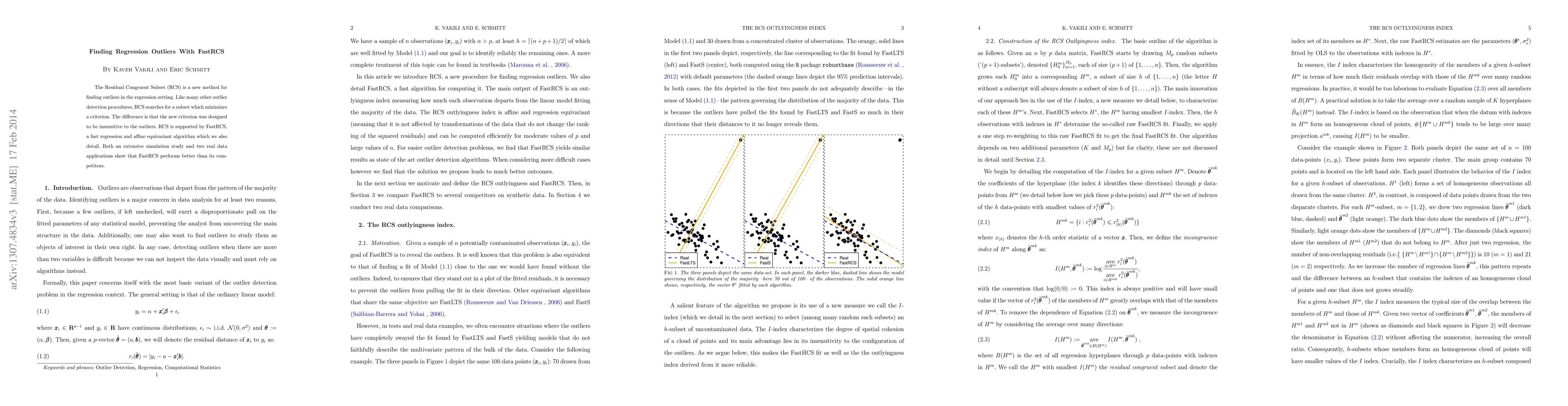 The paper introduces the Residual Congruent Subset (RCS) method for detecting outliers in linear regression, supported by the FastRCS algorithm, which outperforms other methods in simulations and real data applications. The RCS criterion is designed to minimize influence from outliers, making it robust and efficient.