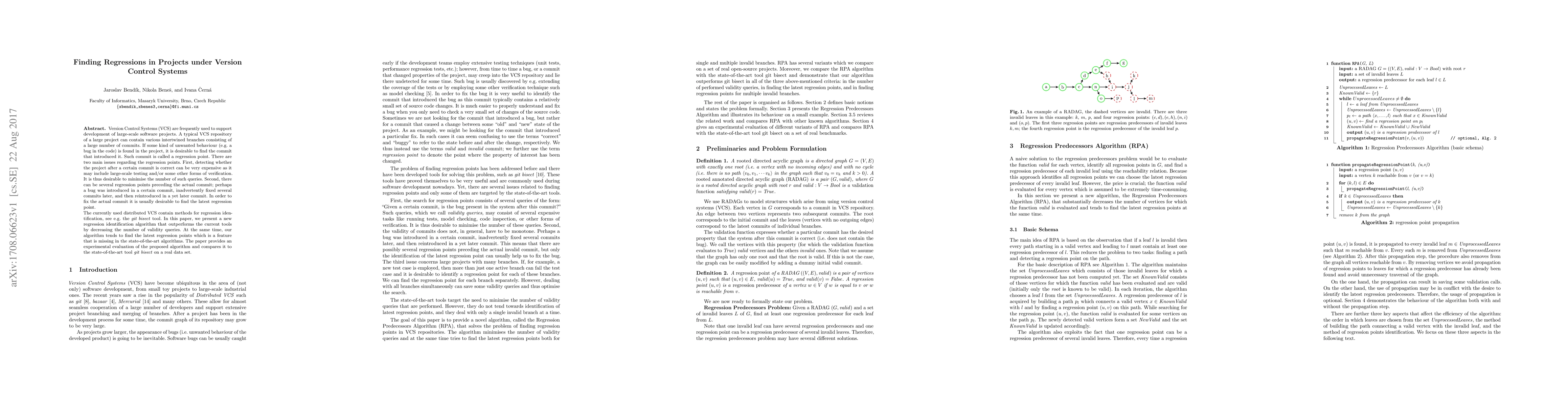 Version Control Systems (VCS) are frequently used to support development of large-scale software projects. A typical VCS repository of a large project can contain various intertwined branches consisting of a large number of commits. If some kind of unwanted behaviour (e.g. a bug in the code) is found in the project, it is desirable to find the commit that introduced it. Such commit is called a regression point. There are two main issues regarding the regression points. First, detecting whether the project after a certain commit is correct can be very expensive as it may include large-scale testing and/or some other forms of verification. It is thus desirable to minimise the number of such queries. Second, there can be several regression points preceding the actual commit; perhaps a bug was introduced in a certain commit, inadvertently fixed several commits later, and then reintroduced in a yet later commit. In order to fix the actual commit it is usually desirable to find the latest regression point. The currently used distributed VCS contain methods for regression identification, see e.g. the git bisect tool. In this paper, we present a new regression identification algorithm that outperforms the current tools by decreasing the number of validity queries. At the same time, our algorithm tends to find the latest regression points which is a feature that is missing in the state-of-the-art algorithms. The paper provides an experimental evaluation of the proposed algorithm and compares it to the state-of-the-art tool git bisect on a real data set.