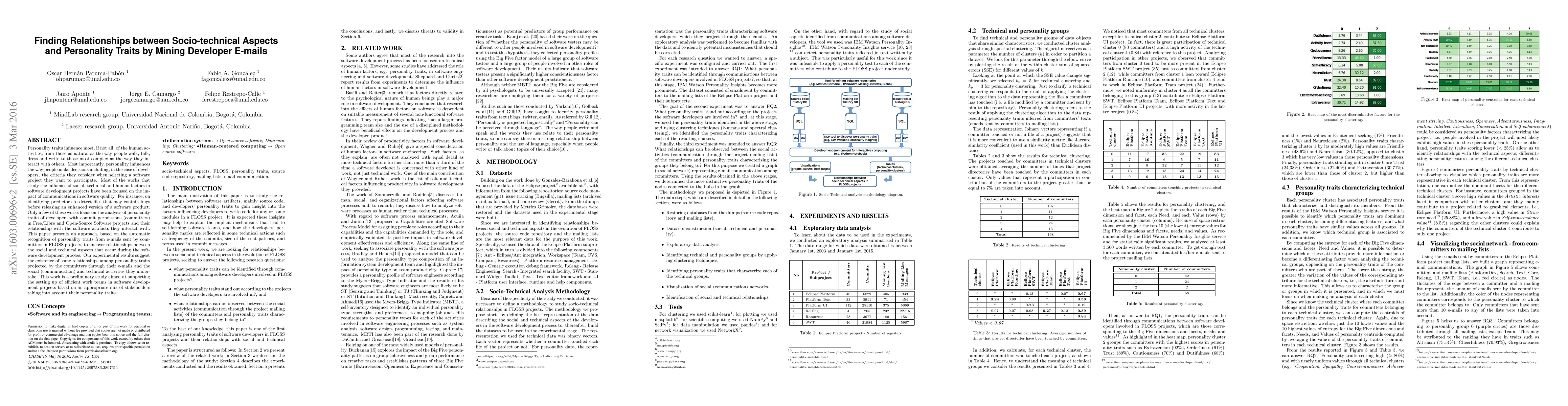 Personality traits influence most, if not all, of the human activities, from those as natural as the way people walk, talk, dress and write to those most complex as the way they interact with others. Most importantly, personality influences the way people make decisions including, in the case of developers, the criteria they consider when selecting a software project they want to participate. Most of the works that study the influence of social, technical and human factors in software development projects have been focused on the impact of communications in software quality. For instance, on identifying predictors to detect files that may contain bugs before releasing an enhanced version of a software product. Only a few of these works focus on the analysis of personality traits of developers with commit permissions (committers) in Free/Libre and Open-Source Software projects and their relationship with the software artifacts they interact with. This paper presents an approach, based on the automatic recognition of personality traits from e-mails sent by committers in FLOSS projects, to uncover relationships between the social and technical aspects that occur during the software development process. Our experimental results suggest the existence of some relationships among personality traits projected by the committers through their e-mails and the social (communication) and technical activities they undertake. This work is a preliminary study aimed at supporting the setting up of efficient work teams in software development projects based on an appropriate mix of stakeholders taking into account their personality traits.
