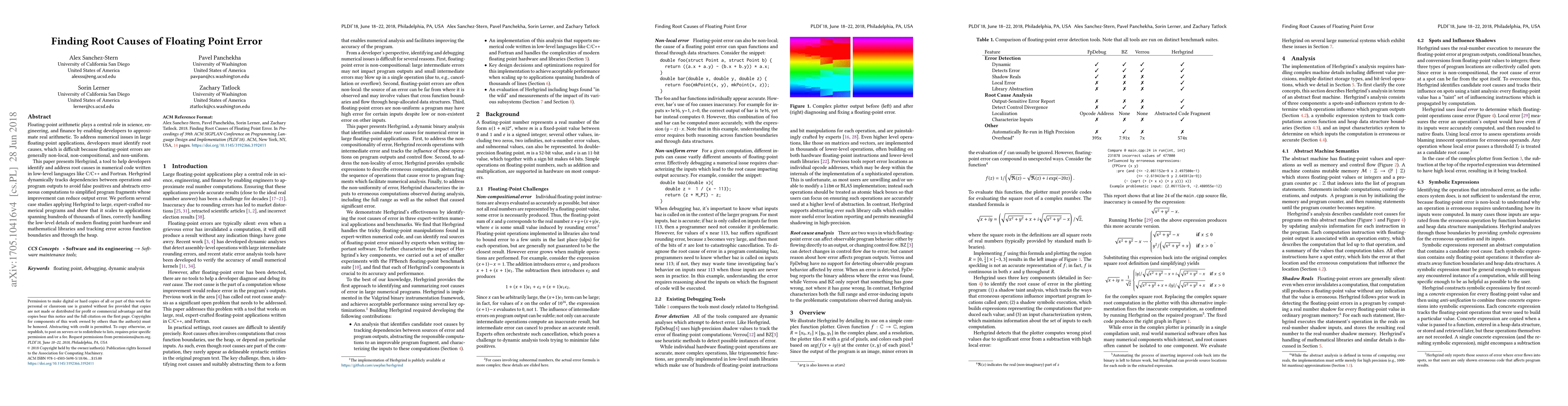 This paper introduces Herbgrind, a tool for identifying root causes of floating-point errors in large numerical applications written in C/C++ and Fortran. It dynamically tracks dependencies and abstracts erroneous computations to simplify error analysis, demonstrating scalability and effectiveness through case studies.