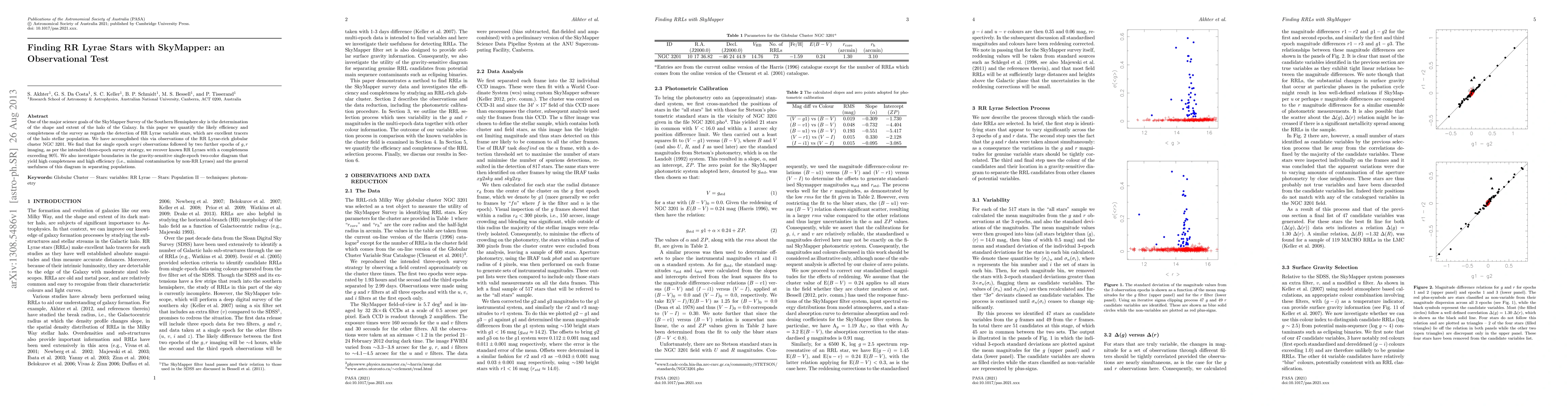 This paper assesses the efficiency and completeness of the SkyMapper Survey in detecting RR Lyrae stars, key tracers of the Galactic halo. Using observations of the RR Lyrae-rich cluster NGC 3201, the study finds over 90% completeness for the survey’s three-epoch imaging strategy and identifies optimal boundaries in the gravity-sensitive two-color diagram for high efficiency in separating RR Lyrae populations.