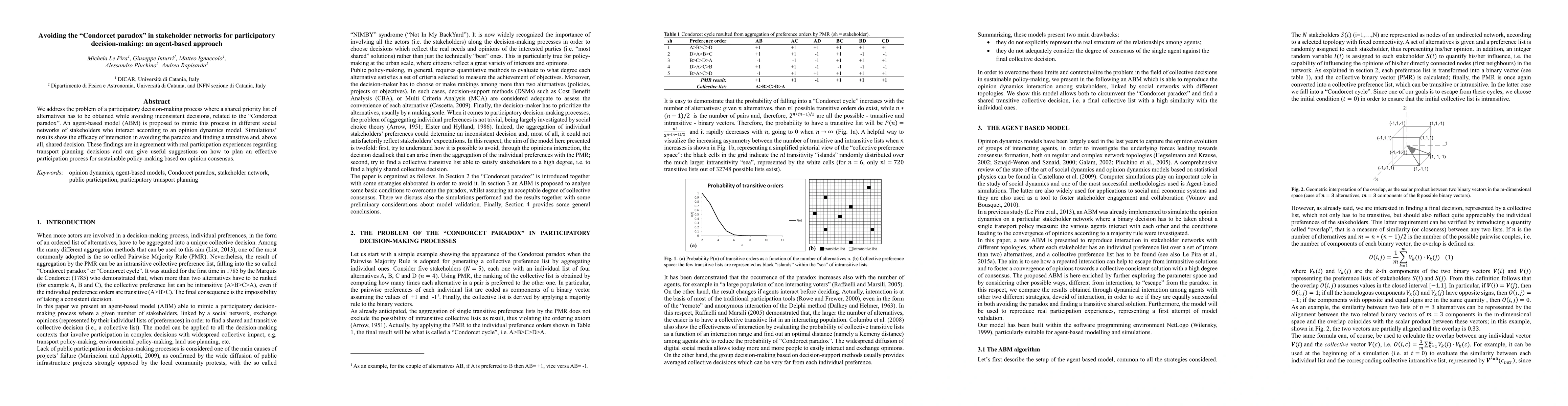 We address the problem of a participatory decision-making process where a shared priority list of alternatives has to be obtained while avoiding inconsistent decisions. An agent-based model (ABM) is proposed to mimic this process in different social networks of stakeholders who interact according to an opinion dynamics model. Simulations' results show the efficacy of interaction in finding a transitive and, above all, shared decision. These findings are in agreement with real participation experiences regarding transport planning decisions and can give useful suggestions on how to plan an effective participation process for sustainable policy-making based on opinion consensus.