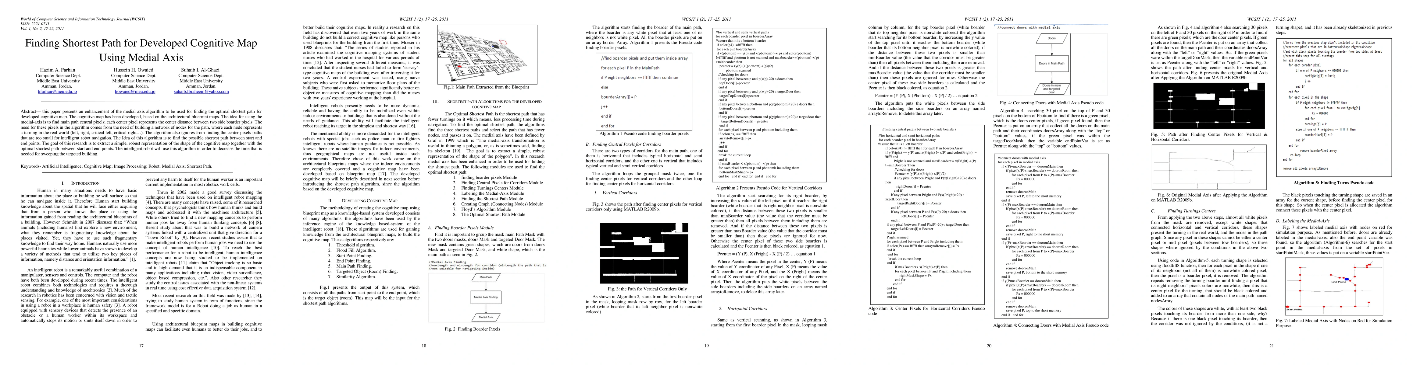 This paper enhances the medial axis algorithm to determine the optimal shortest path in a developed cognitive map based on architectural blueprints. The algorithm identifies central path pixels, ignoring small paths for intelligent robot navigation, to create a network of nodes representing real-world turns, aiming to decrease the time needed for building sweeps.