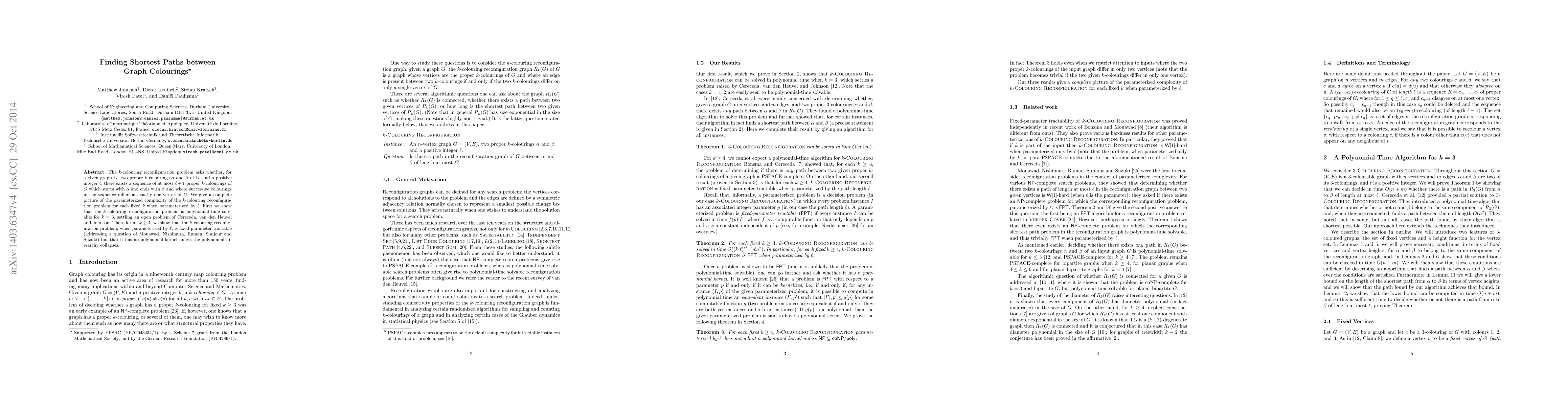 Researchers solved the k-colouring reconfiguration problem for 3-colourings in polynomial time and found that for higher k values (k >= 4), the problem is fixed-parameter tractable but has no polynomial kernel unless the polynomial hierarchy collapses.