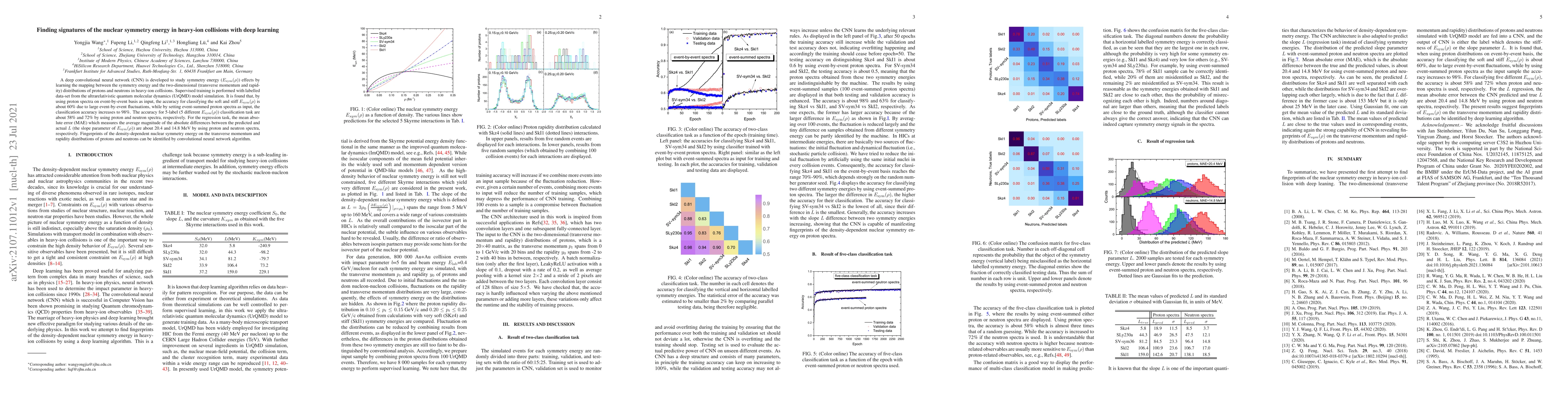 This paper develops a deep convolutional neural network (CNN) to study the nuclear symmetry energy effects in heavy-ion collisions, achieving high classification accuracy (up to 98%) by using event-summed proton spectra. The CNN identifies signatures of the density-dependent nuclear symmetry energy in the distributions of protons and neutrons, with mean absolute errors of 20.4 MeV for proton spectra and 14.8 MeV for neutron spectra in regression tasks.