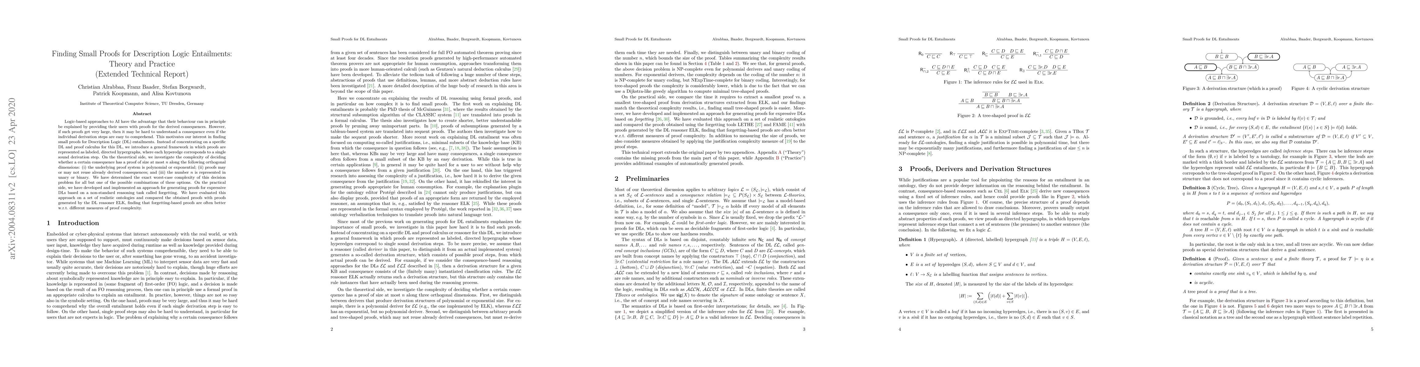 This paper introduces a framework for generating small proofs in Description Logic entailments using labeled directed hypergraphs. It explores the complexity of finding proofs of bounded size under various conditions and presents a practical approach based on a reasoning task called forgetting, which often produces more manageable proofs compared to existing reasoners.