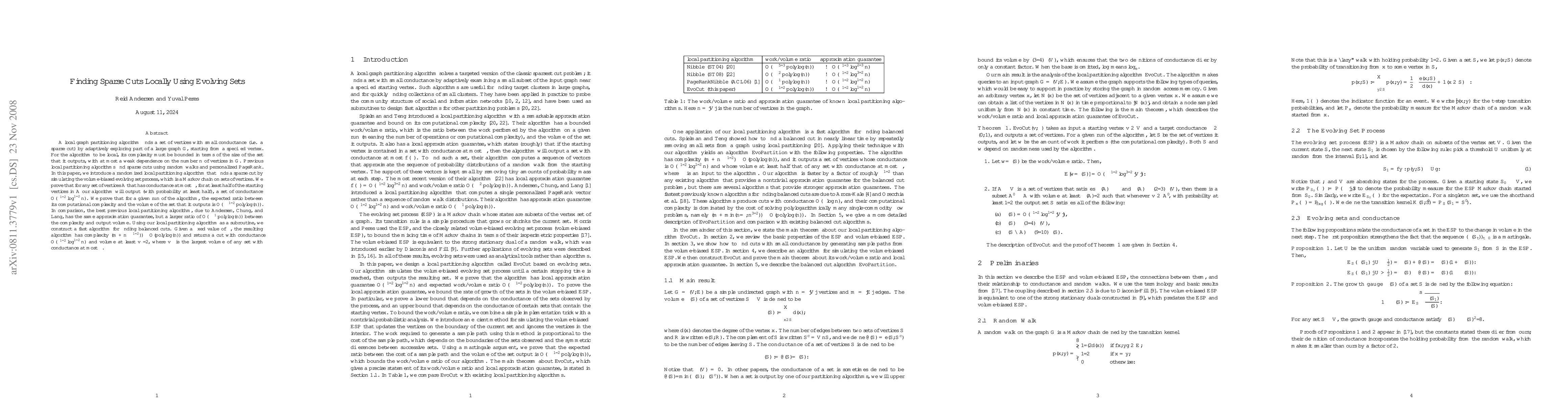 A {\em local graph partitioning algorithm} finds a set of vertices with small conductance (i.e. a sparse cut) by adaptively exploring part of a large graph $G$, starting from a specified vertex. For the algorithm to be local, its complexity must be bounded in terms of the size of the set that it outputs, with at most a weak dependence on the number $n$ of vertices in $G$. Previous local partitioning algorithms find sparse cuts using random walks and personalized PageRank. In this paper, we introduce a randomized local partitioning algorithm that finds a sparse cut by simulating the {\em volume-biased evolving set process}, which is a Markov chain on sets of vertices. We prove that for any set of vertices $A$ that has conductance at most $\phi$, for at least half of the starting vertices in $A$ our algorithm will output (with probability at least half), a set of conductance $O(\phi^{1/2} \log^{1/2} n)$. We prove that for a given run of the algorithm, the expected ratio between its computational complexity and the volume of the set that it outputs is $O(\phi^{-1/2} polylog(n))$. In comparison, the best previous local partitioning algorithm, due to Andersen, Chung, and Lang, has the same approximation guarantee, but a larger ratio of $O(\phi^{-1} polylog(n))$ between the complexity and output volume. Using our local partitioning algorithm as a subroutine, we construct a fast algorithm for finding balanced cuts. Given a fixed value of $\phi$, the resulting algorithm has complexity $O((m+n\phi^{-1/2}) polylog(n))$ and returns a cut with conductance $O(\phi^{1/2} \log^{1/2} n)$ and volume at least $v_{\phi}/2$, where $v_{\phi}$ is the largest volume of any set with conductance at most $\phi$.