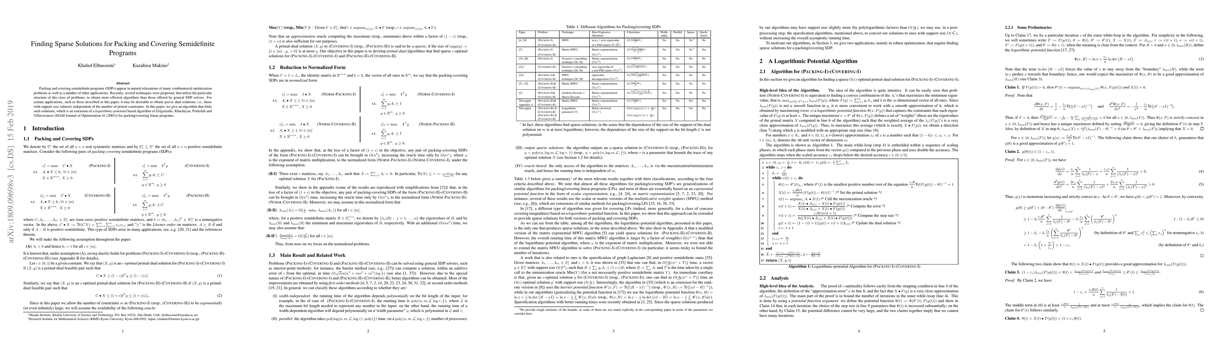 This paper presents an algorithm for finding sparse dual solutions in packing and covering semidefinite programs, extending a logarithmic-potential method originally developed for linear programs. This approach aims to achieve solutions with support size independent of the number of primal constraints, enhancing efficiency for specific applications.