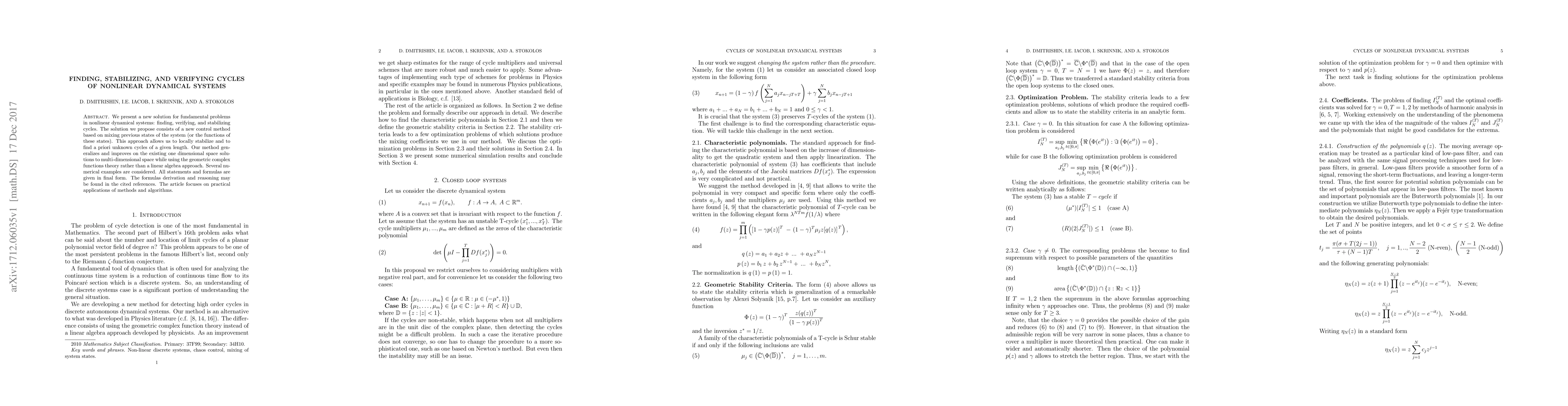 We present a new solution for fundamental problems in nonlinear dynamical systems: finding, verifying, and stabilizing cycles. The solution we propose consists of a new control method based on mixing previous states of the system (or the functions of these states). This approach allows us to locally stabilize and to find a priori unknown cycles of a given length. Our method generalizes and improves on the existing one dimensional space solutions to multi-dimensional space while using the geometric complex functions theory rather than a linear algebra approach. Several numerical examples are considered. All statements and formulas are given in final form. The formulas derivation and reasoning may be found in the cited references. The article focuses on practical applications of methods and algorithms.